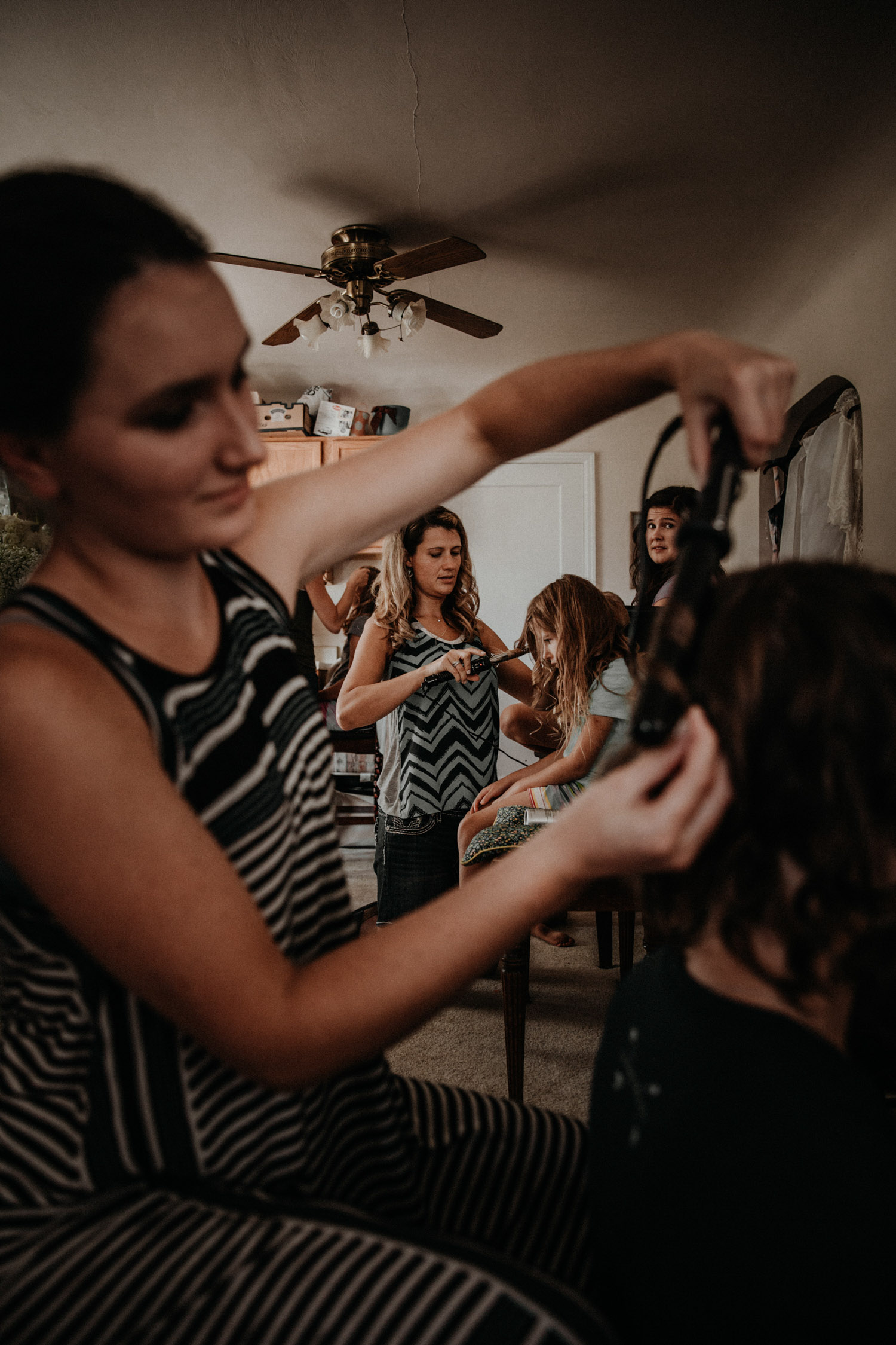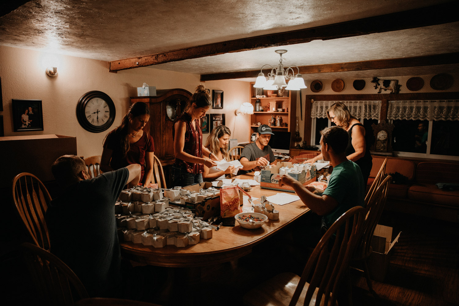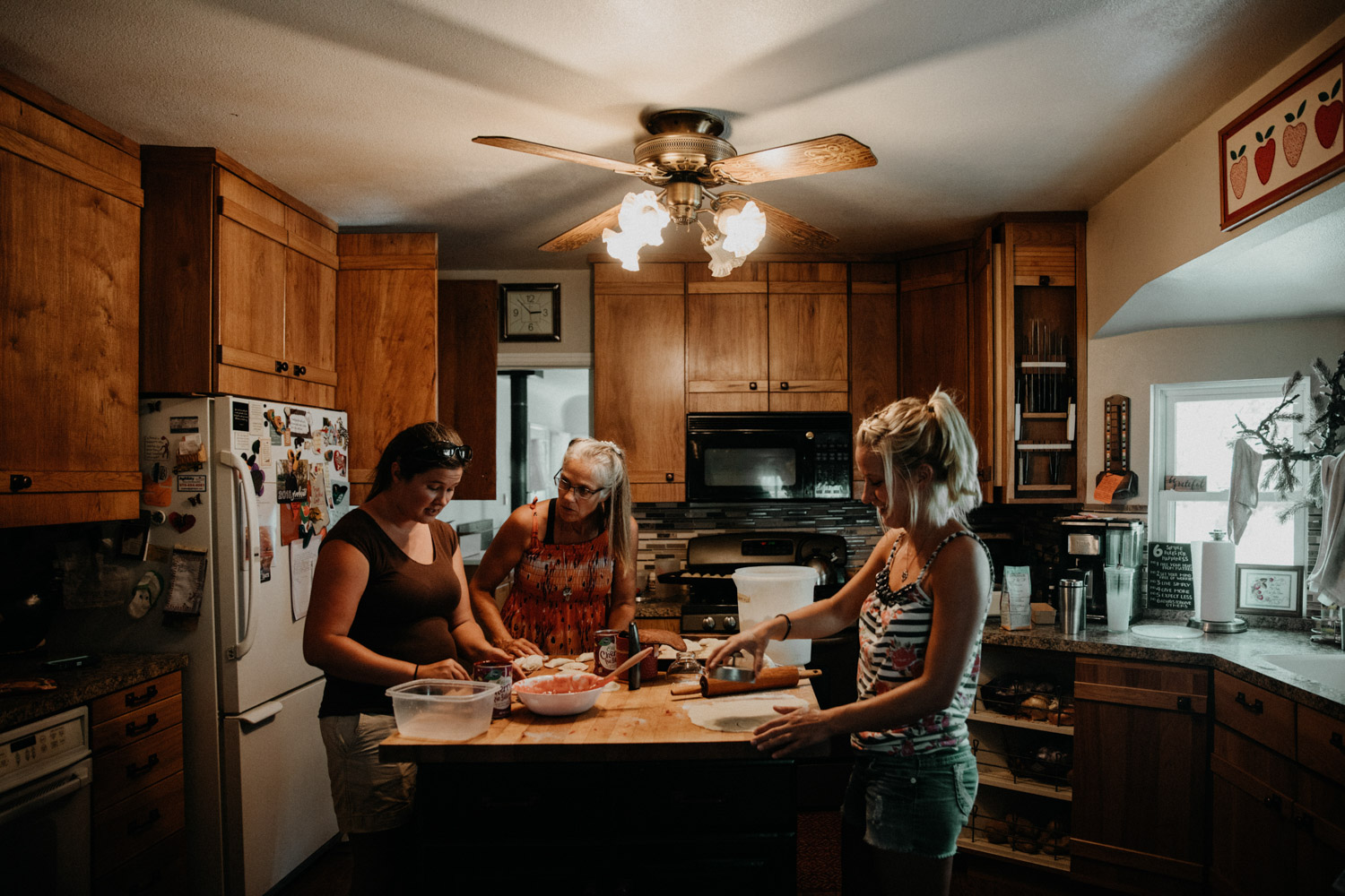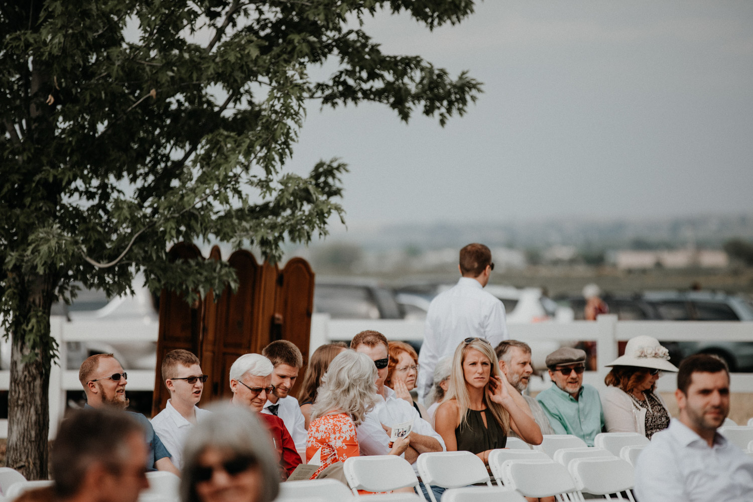Es gibt Hochzeitsfotografen, man nennt sie “destination photographers”, deren Beruf ist es, jedes Wochenende in ein anderes Land zu einer sogenannten “destination wedding” zu reisen – also einer Hochzeit im Ausland, an einem besonders schönen Ort. Für viele kleinere Hochzeitsfotografen ist das der absolute Traum und sie arbeiten darauf hin, solche Buchungen zu bekommen. Auch ich würde dazu nicht nein sagen, trotzdem ist es für mich in meiner Situation nicht realistisch, das regelmässig zu machen, denn mein Hauptberuf ist ja ein anderer und ich kann es mir zeitlich nicht leisten, jedes Wochenende zu verreisen. Trotzdem ist es natürlich unglaublich reizvoll, und neben einer Hochzeit in der Toscana war auch eine Hochzeit in den USA schon lange ein kleiner Traum von mir. Andere Landschaften, andere Traditionen, andere Gebräuche – daraus entsteht eine andere Ästhetik, die man als Schweizer Hochzeitsfotografin nicht antrifft. Obwohl ich nicht seit 30 Jahren im Geschäft bin und noch keine 100 Hochzeiten fotografiert habe, freue ich mich immer, wenn ein Paar sich traut, seinen Tag etwas anders als all die anderen zu gestalten. Routine vernichtet zuverlässig die Kreativität, Abwechslung und neue Situationen hingegen fördern sie, und so habe ich mich wahnsinnig gefreut, als sich durch glückliche Umstände diese Möglichkeit für mich ergeben hat. Verhältnismässig kurzfristig haben wir das Ganze geplant, und durch viel guten und schlechten Stress in den Wochen davor konnte ich gar nicht zu viel darüber nachdenken. Irgendwann war der grosse Tag plötzlich da, und ich habe meine Koffer gepackt – zur Hälfte voll mit Kameras, Objektiven und Blitzen – und bin losgezogen. Nach knapp 11h Flug bin ich spät abends in Denver, Colorado gelandet und wurde von der zukünftigen Braut und 2 ihrer 11 Nichten und Neffen am Flughafen begrüsst. Keine 30min später fand ich mich schon zum ersten Mal in einem drive-through einer amerikanischen Fast-Food-Kette wieder – die Kinder, die so geduldig auf mich gewartet hatten sollten belohnt werden! 😀 Typisch amerikanisch – ich habe mich ebenso typisch schweizerisch der Zuckerbombe vorerst mal noch enthalten. Kurz später sind wir auf der Farm der sehr grossen Familie angekommen – mitten in Colorados Nirgendwo. Viel konnte ich in der Dunkelheit nicht erkennen, aber ich wurde herzlichst begrüsst und bin schon wenige Minuten später müde ins Bett gefallen. Lange hat der Spass nicht angehalten, Jetlag sei dank. Nachdem ich mich noch 6 Stunden wach im Bett gewälzt hatte, kam irgendwann Leben ins grosse Haus und ich hab nach und nach alle Familienmitglieder kennengelernt. Bis heute bin ich mir noch nicht bei allen sicher, von wem sie jetzt die Tochter oder der Bruder sind, aber die Herzlichkeit, mit der sie mich empfangen haben, ist ihnen allen gemein. So begann also eine Woche voll mit Vorbereitungen für den einen grossen Tag: Muffins backen (grob gesagt: eine Schicht Schokolade, eine Schicht Peanut Butter und darüber nochmal eine Schicht Schokolade), Deko auspacken und vorbereiten, Gastgeschenke verpacken, ein Besuch aller weiblichen Familienmitglieder bei der Maniküre, die Bachelorette-Party… Wir waren gut beschäftigt und die Tage vergingen wie im Flug. Am Tag vor der Hochzeit findet bei amerikanischen Hochzeiten traditionellerweise ein sogenanntes “rehearsal dinner” statt, eine Art Probedurchlauf. Die ganze Zeremonie wurde mit der gesamten “bridal party” (6 Brautjungfern, 6 Trauzeugen und jeweils ebensoviele Kinder, sprich 24 Personen) mehrmals durchexerziert, bis jedes Kind genau wusste, wann es wo stehen oder gehen soll.