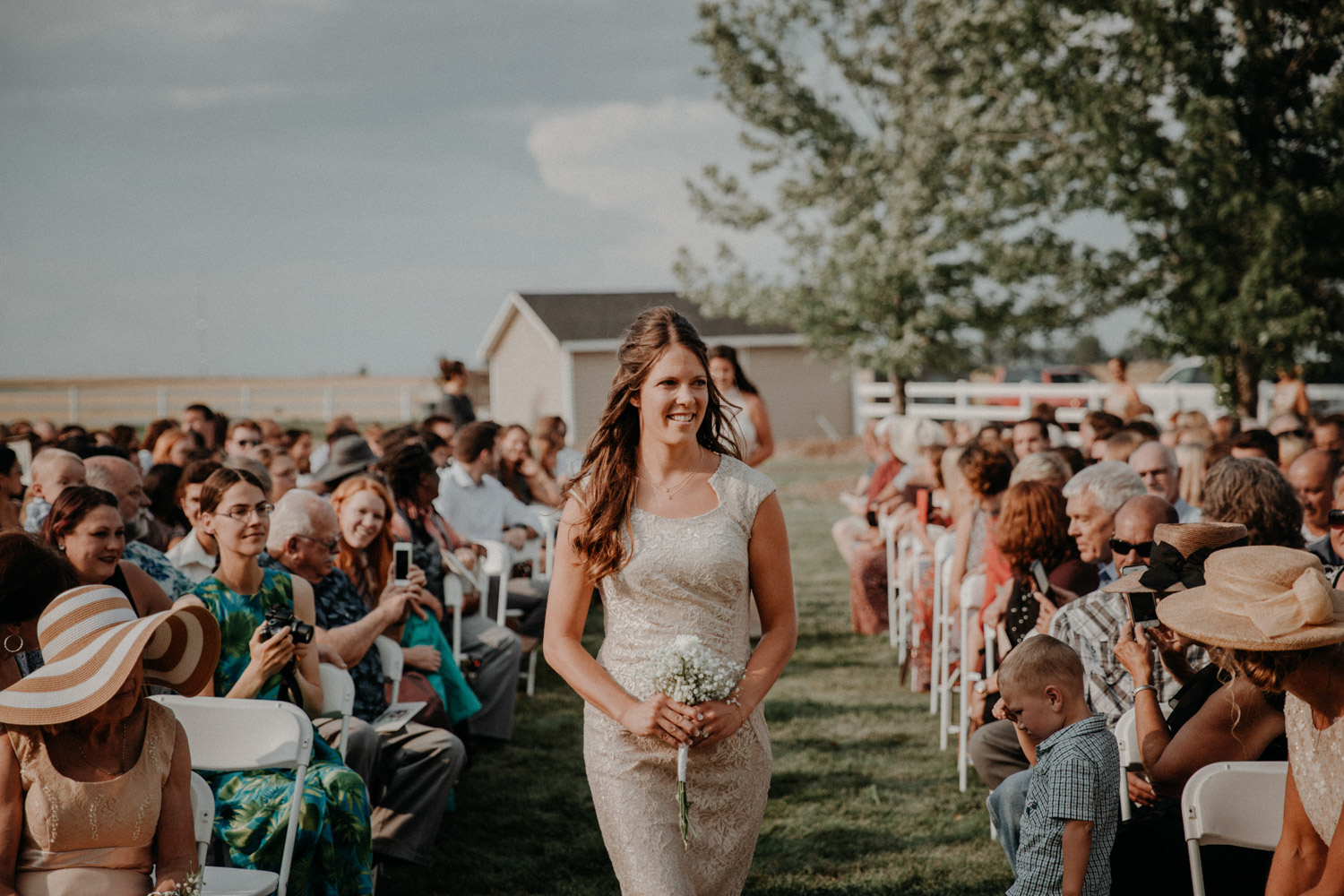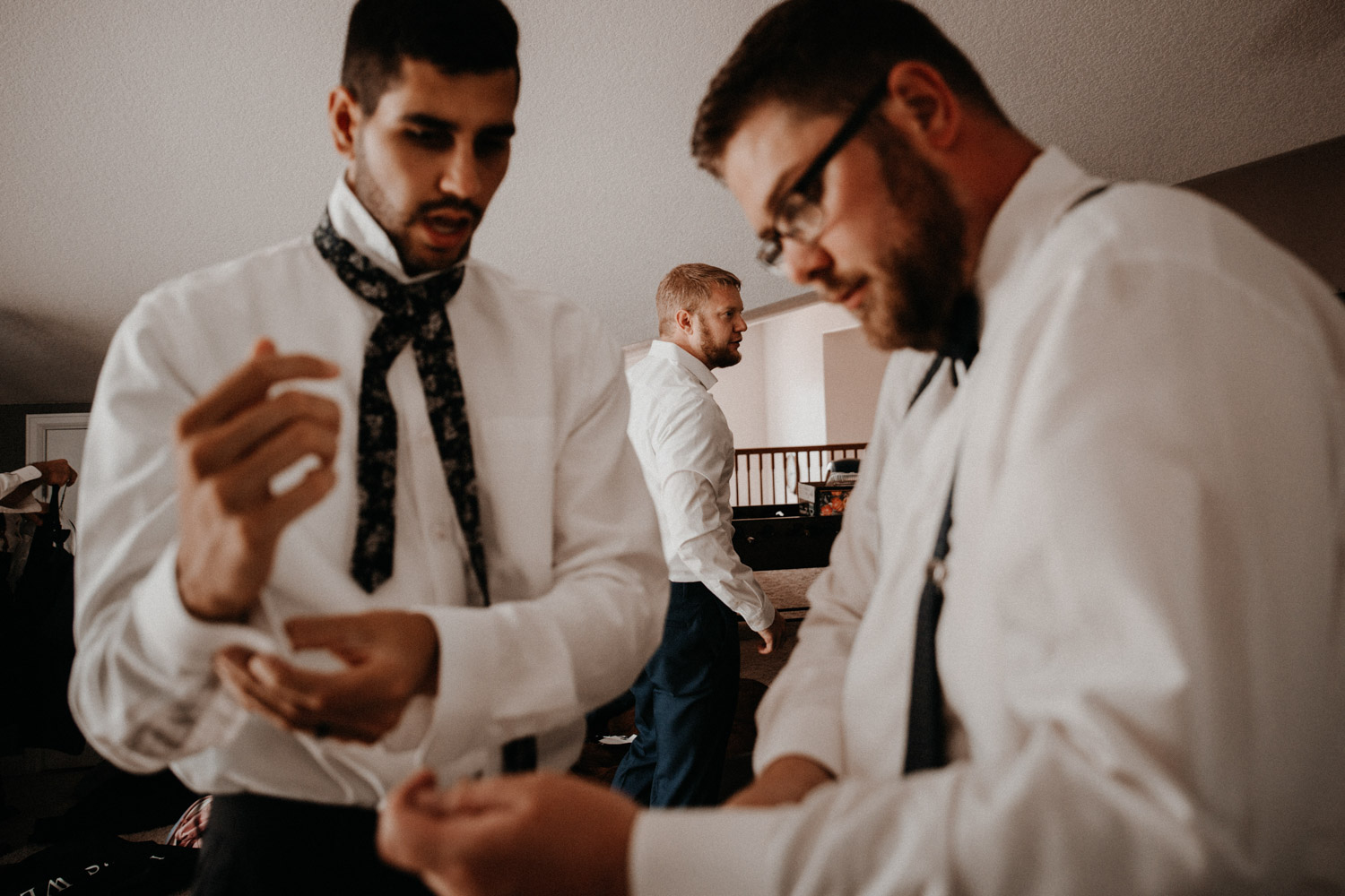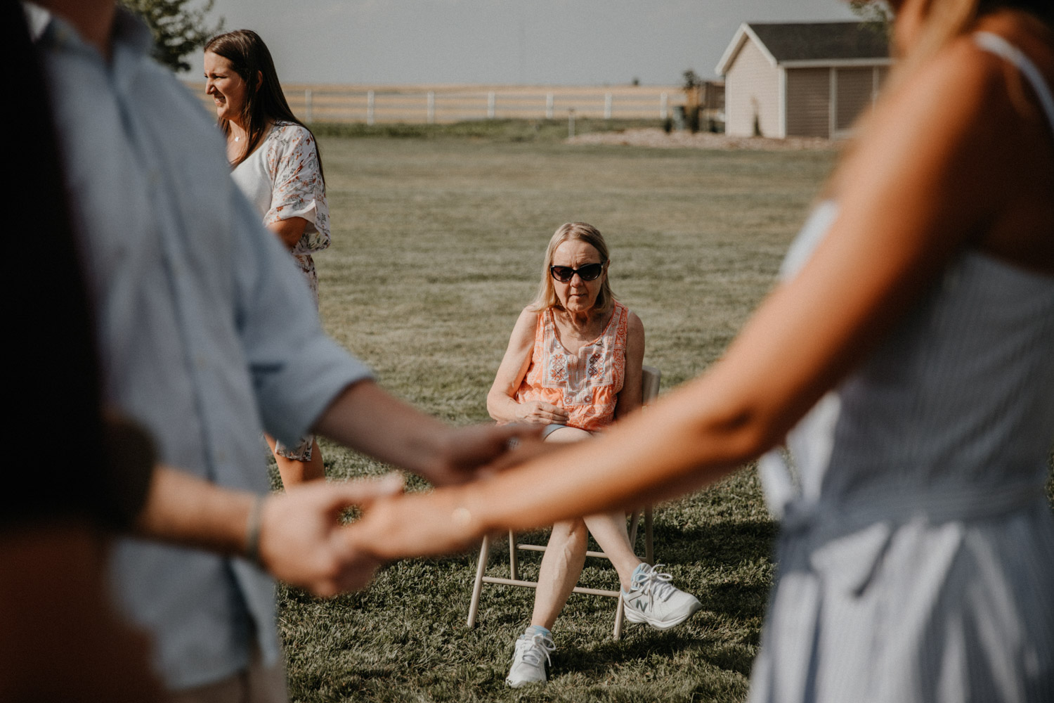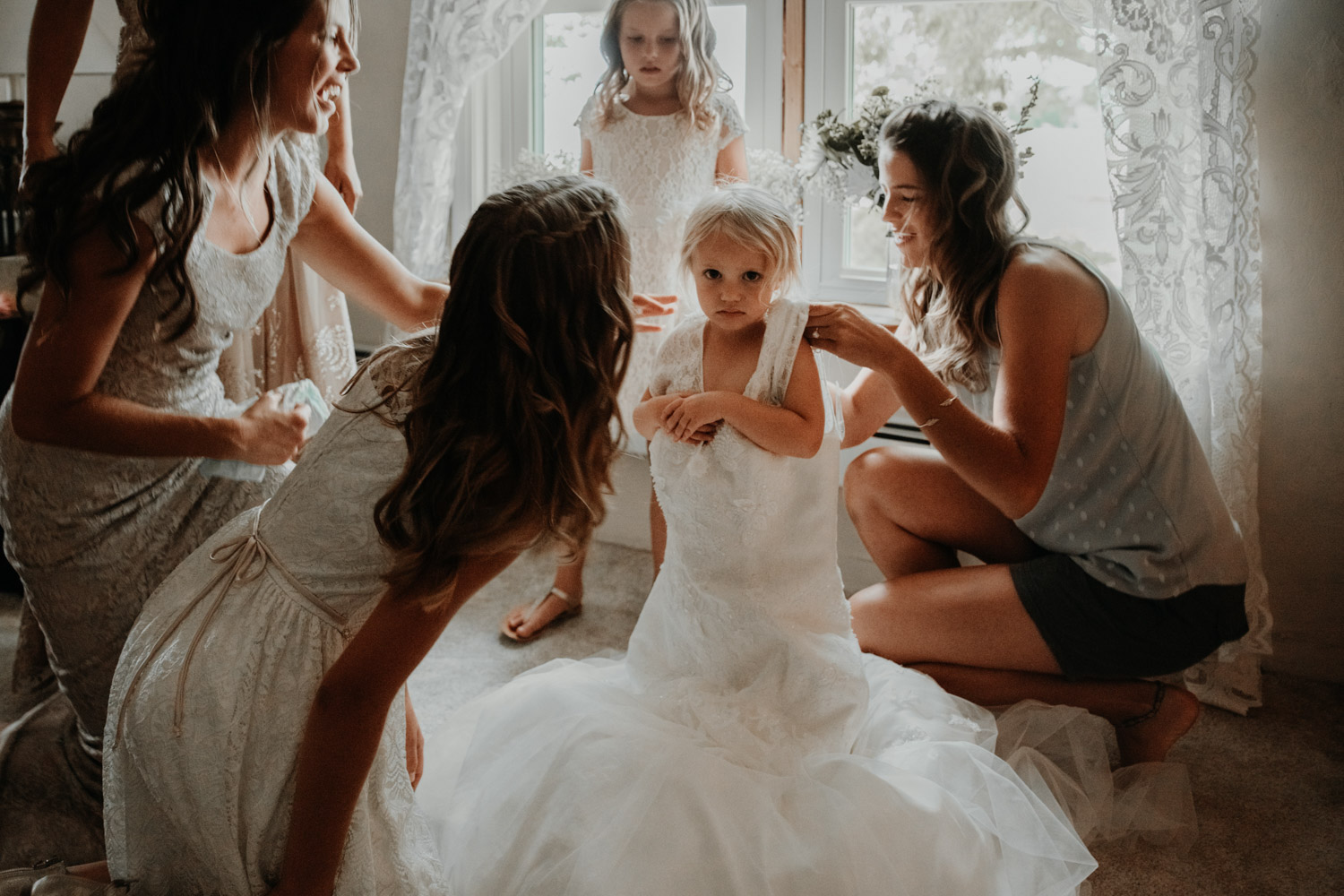 Es gibt Hochzeitsfotografen, man nennt sie “destination photographers”, deren Beruf ist es, jedes Wochenende in ein anderes Land zu einer sogenannten “destination wedding” zu reisen – also einer Hochzeit im Ausland, an einem besonders schönen Ort. Für viele kleinere Hochzeitsfotografen ist das der absolute Traum und sie arbeiten darauf hin, solche Buchungen zu bekommen. Auch ich würde dazu nicht nein sagen, trotzdem ist es für mich in meiner Situation nicht realistisch, das regelmässig zu machen, denn mein Hauptberuf ist ja ein anderer und ich kann es mir zeitlich nicht leisten, jedes Wochenende zu verreisen. Trotzdem ist es natürlich unglaublich reizvoll, und neben einer Hochzeit in der Toscana war auch eine Hochzeit in den USA schon lange ein kleiner Traum von mir. Andere Landschaften, andere Traditionen, andere Gebräuche – daraus entsteht eine andere Ästhetik, die man als Schweizer Hochzeitsfotografin nicht antrifft. Obwohl ich nicht seit 30 Jahren im Geschäft bin und noch keine 100 Hochzeiten fotografiert habe, freue ich mich immer, wenn ein Paar sich traut, seinen Tag etwas anders als all die anderen zu gestalten. Routine vernichtet zuverlässig die Kreativität, Abwechslung und neue Situationen hingegen fördern sie, und so habe ich mich wahnsinnig gefreut, als sich durch glückliche Umstände diese Möglichkeit für mich ergeben hat. Verhältnismässig kurzfristig haben wir das Ganze geplant, und durch viel guten und schlechten Stress in den Wochen davor konnte ich gar nicht zu viel darüber nachdenken. Irgendwann war der grosse Tag plötzlich da, und ich habe meine Koffer gepackt – zur Hälfte voll mit Kameras, Objektiven und Blitzen – und bin losgezogen. Nach knapp 11h Flug bin ich spät abends in Denver, Colorado gelandet und wurde von der zukünftigen Braut und 2 ihrer 11 Nichten und Neffen am Flughafen begrüsst. Keine 30min später fand ich mich schon zum ersten Mal in einem drive-through einer amerikanischen Fast-Food-Kette wieder – die Kinder, die so geduldig auf mich gewartet hatten sollten belohnt werden! 😀 Typisch amerikanisch – ich habe mich ebenso typisch schweizerisch der Zuckerbombe vorerst mal noch enthalten. Kurz später sind wir auf der Farm der sehr grossen Familie angekommen – mitten in Colorados Nirgendwo. Viel konnte ich in der Dunkelheit nicht erkennen, aber ich wurde herzlichst begrüsst und bin schon wenige Minuten später müde ins Bett gefallen. Lange hat der Spass nicht angehalten, Jetlag sei dank. Nachdem ich mich noch 6 Stunden wach im Bett gewälzt hatte, kam irgendwann Leben ins grosse Haus und ich hab nach und nach alle Familienmitglieder kennengelernt. Bis heute bin ich mir noch nicht bei allen sicher, von wem sie jetzt die Tochter oder der Bruder sind, aber die Herzlichkeit, mit der sie mich empfangen haben, ist ihnen allen gemein. So begann also eine Woche voll mit Vorbereitungen für den einen grossen Tag: Muffins backen (grob gesagt: eine Schicht Schokolade, eine Schicht Peanut Butter und darüber nochmal eine Schicht Schokolade), Deko auspacken und vorbereiten, Gastgeschenke verpacken, ein Besuch aller weiblichen Familienmitglieder bei der Maniküre, die Bachelorette-Party… Wir waren gut beschäftigt und die Tage vergingen wie im Flug. Am Tag vor der Hochzeit findet bei amerikanischen Hochzeiten traditionellerweise ein sogenanntes “rehearsal dinner” statt, eine Art Probedurchlauf. Die ganze Zeremonie wurde mit der gesamten “bridal party” (6 Brautjungfern, 6 Trauzeugen und jeweils ebensoviele Kinder, sprich 24 Personen) mehrmals durchexerziert, bis jedes Kind genau wusste, wann es wo stehen oder gehen soll.