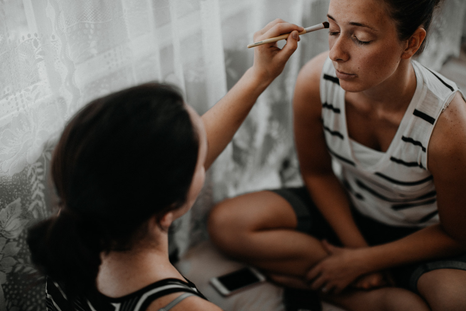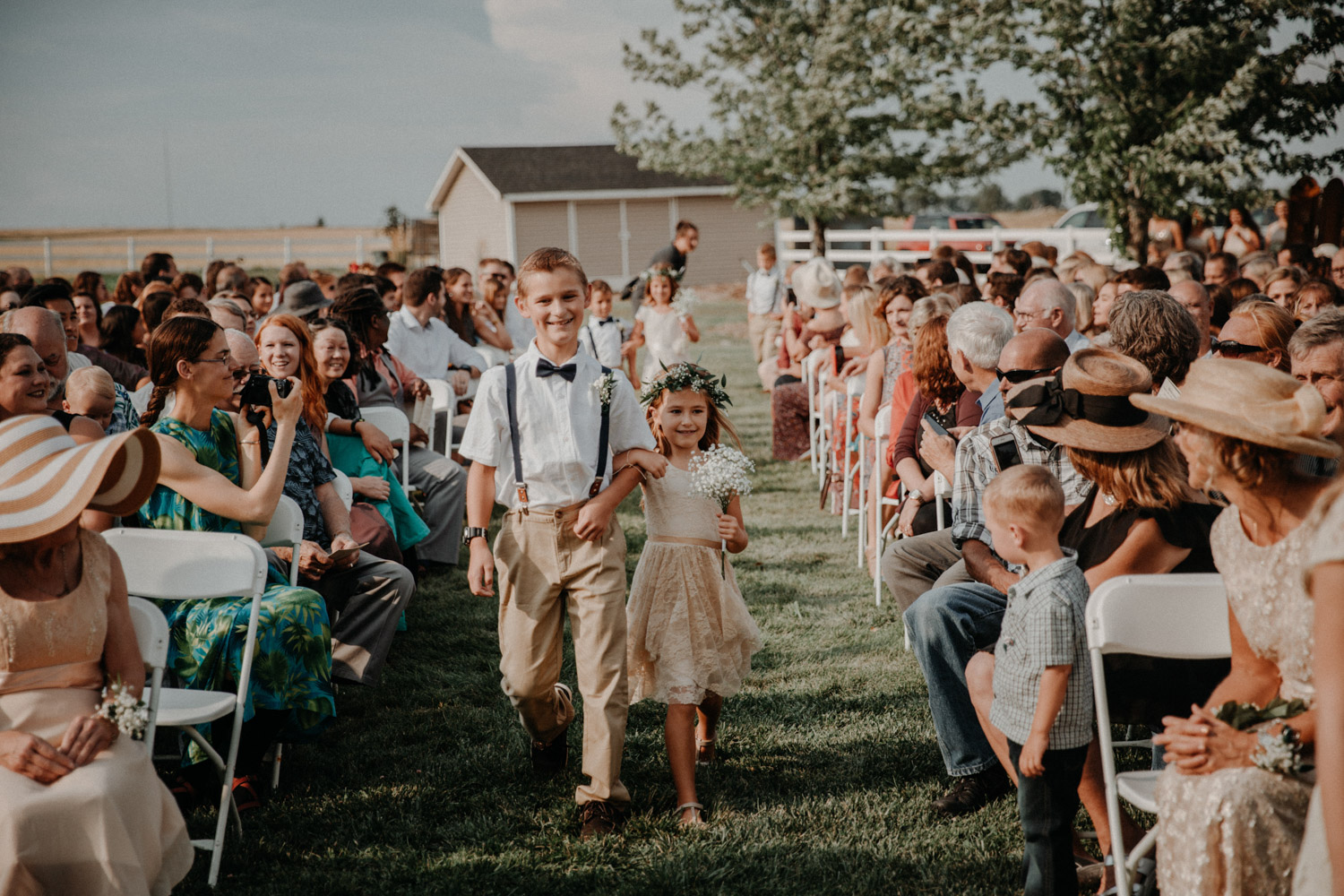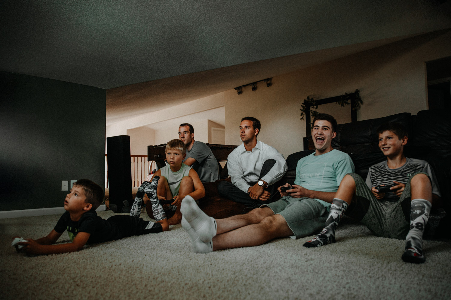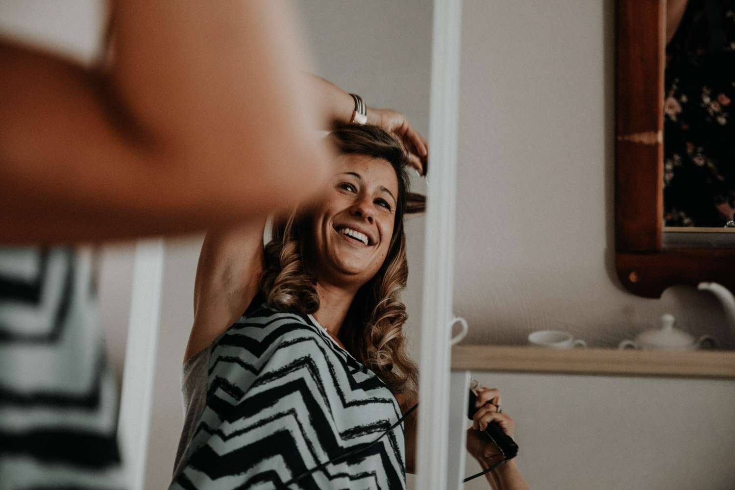 Es gibt Hochzeitsfotografen, man nennt sie “destination photographers”, deren Beruf ist es, jedes Wochenende in ein anderes Land zu einer sogenannten “destination wedding” zu reisen – also einer Hochzeit im Ausland, an einem besonders schönen Ort. Für viele kleinere Hochzeitsfotografen ist das der absolute Traum und sie arbeiten darauf hin, solche Buchungen zu bekommen. Auch ich würde dazu nicht nein sagen, trotzdem ist es für mich in meiner Situation nicht realistisch, das regelmässig zu machen, denn mein Hauptberuf ist ja ein anderer und ich kann es mir zeitlich nicht leisten, jedes Wochenende zu verreisen. Trotzdem ist es natürlich unglaublich reizvoll, und neben einer Hochzeit in der Toscana war auch eine Hochzeit in den USA schon lange ein kleiner Traum von mir. Andere Landschaften, andere Traditionen, andere Gebräuche – daraus entsteht eine andere Ästhetik, die man als Schweizer Hochzeitsfotografin nicht antrifft. Obwohl ich nicht seit 30 Jahren im Geschäft bin und noch keine 100 Hochzeiten fotografiert habe, freue ich mich immer, wenn ein Paar sich traut, seinen Tag etwas anders als all die anderen zu gestalten. Routine vernichtet zuverlässig die Kreativität, Abwechslung und neue Situationen hingegen fördern sie, und so habe ich mich wahnsinnig gefreut, als sich durch glückliche Umstände diese Möglichkeit für mich ergeben hat. Verhältnismässig kurzfristig haben wir das Ganze geplant, und durch viel guten und schlechten Stress in den Wochen davor konnte ich gar nicht zu viel darüber nachdenken. Irgendwann war der grosse Tag plötzlich da, und ich habe meine Koffer gepackt – zur Hälfte voll mit Kameras, Objektiven und Blitzen – und bin losgezogen. Nach knapp 11h Flug bin ich spät abends in Denver, Colorado gelandet und wurde von der zukünftigen Braut und 2 ihrer 11 Nichten und Neffen am Flughafen begrüsst. Keine 30min später fand ich mich schon zum ersten Mal in einem drive-through einer amerikanischen Fast-Food-Kette wieder – die Kinder, die so geduldig auf mich gewartet hatten sollten belohnt werden! 😀 Typisch amerikanisch – ich habe mich ebenso typisch schweizerisch der Zuckerbombe vorerst mal noch enthalten. Kurz später sind wir auf der Farm der sehr grossen Familie angekommen – mitten in Colorados Nirgendwo. Viel konnte ich in der Dunkelheit nicht erkennen, aber ich wurde herzlichst begrüsst und bin schon wenige Minuten später müde ins Bett gefallen. Lange hat der Spass nicht angehalten, Jetlag sei dank. Nachdem ich mich noch 6 Stunden wach im Bett gewälzt hatte, kam irgendwann Leben ins grosse Haus und ich hab nach und nach alle Familienmitglieder kennengelernt. Bis heute bin ich mir noch nicht bei allen sicher, von wem sie jetzt die Tochter oder der Bruder sind, aber die Herzlichkeit, mit der sie mich empfangen haben, ist ihnen allen gemein. So begann also eine Woche voll mit Vorbereitungen für den einen grossen Tag: Muffins backen (grob gesagt: eine Schicht Schokolade, eine Schicht Peanut Butter und darüber nochmal eine Schicht Schokolade), Deko auspacken und vorbereiten, Gastgeschenke verpacken, ein Besuch aller weiblichen Familienmitglieder bei der Maniküre, die Bachelorette-Party… Wir waren gut beschäftigt und die Tage vergingen wie im Flug. Am Tag vor der Hochzeit findet bei amerikanischen Hochzeiten traditionellerweise ein sogenanntes “rehearsal dinner” statt, eine Art Probedurchlauf. Die ganze Zeremonie wurde mit der gesamten “bridal party” (6 Brautjungfern, 6 Trauzeugen und jeweils ebensoviele Kinder, sprich 24 Personen) mehrmals durchexerziert, bis jedes Kind genau wusste, wann es wo stehen oder gehen soll.