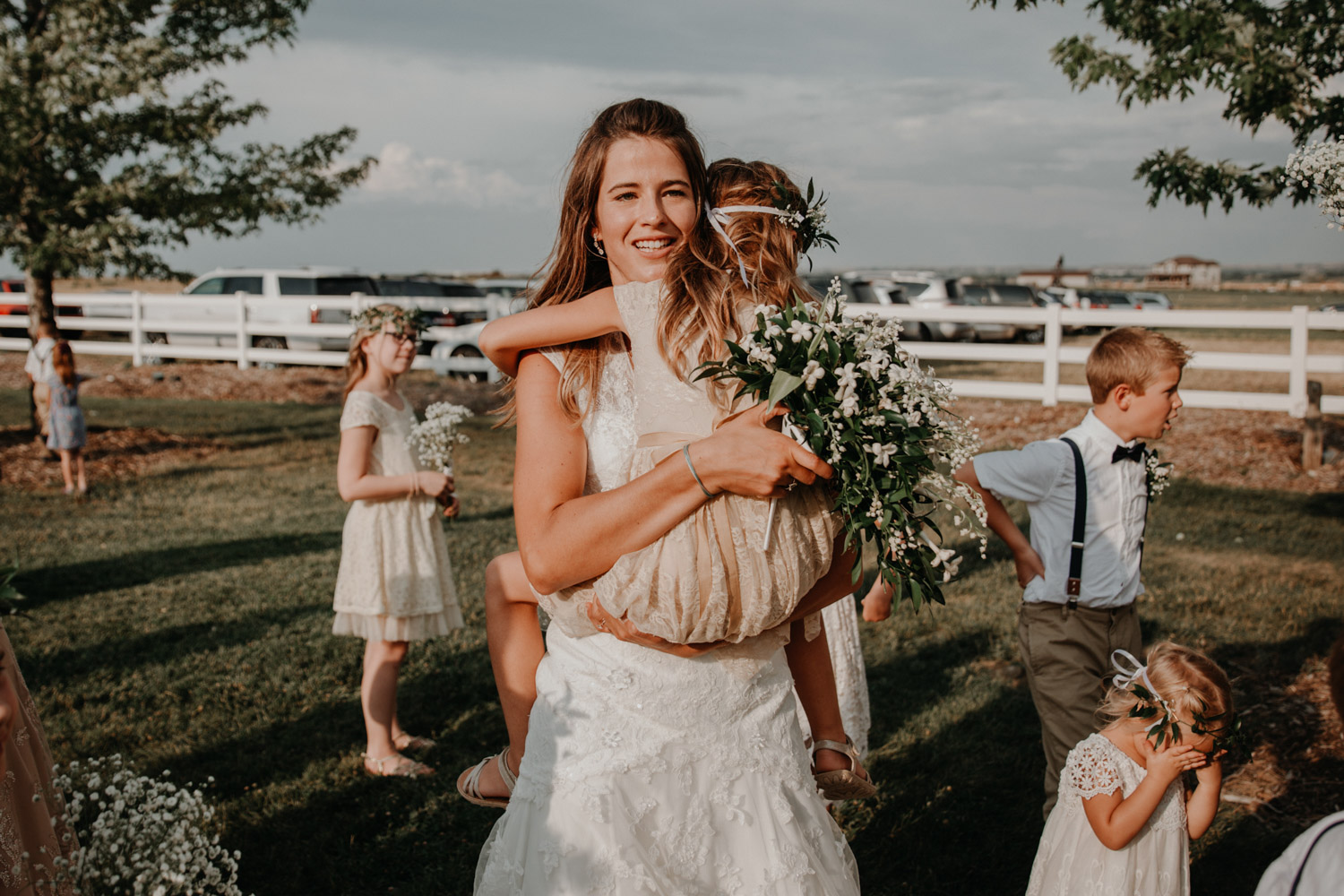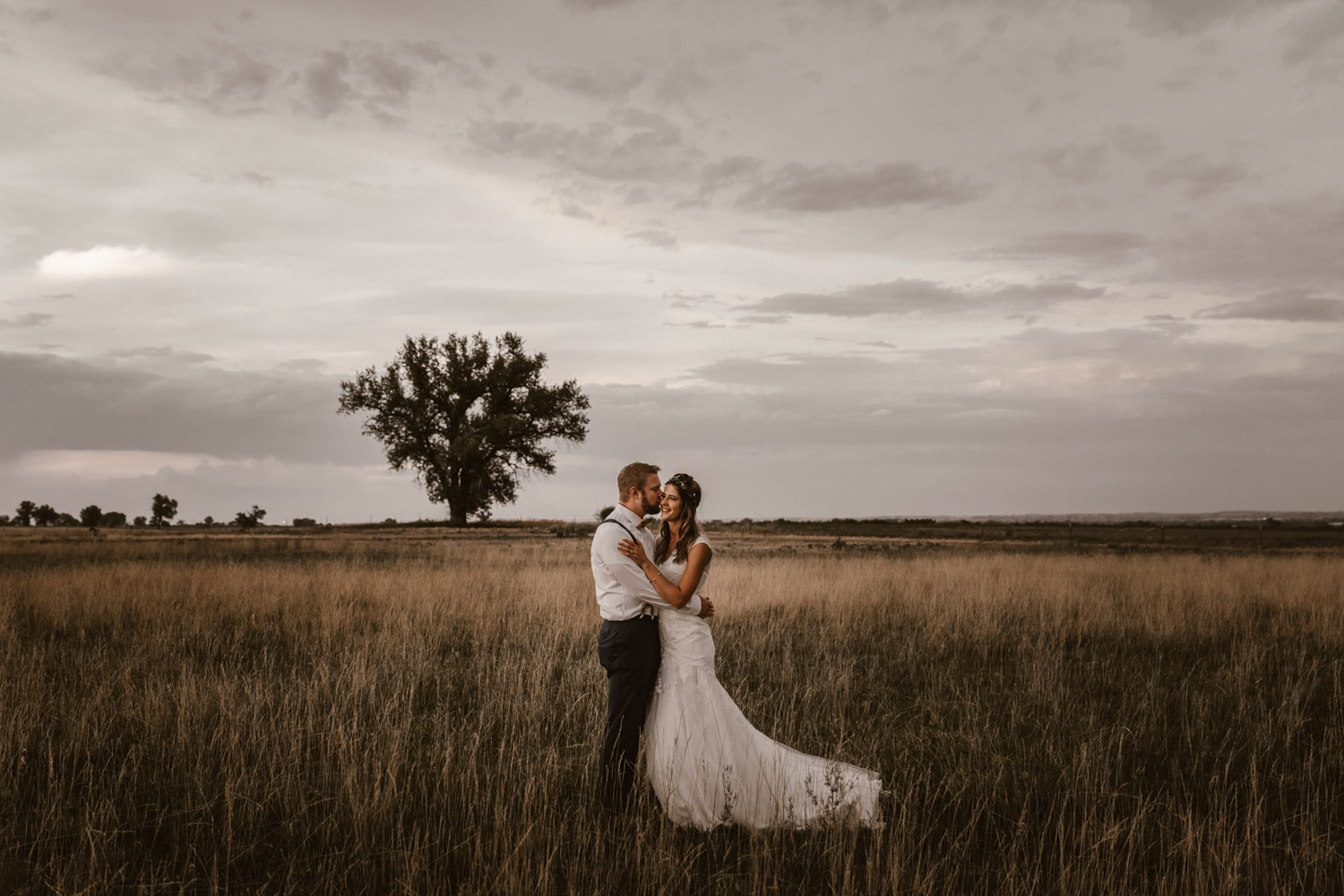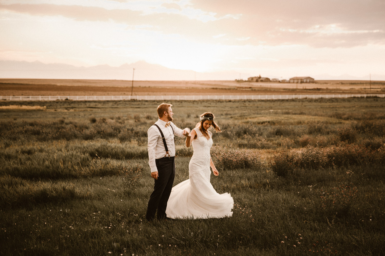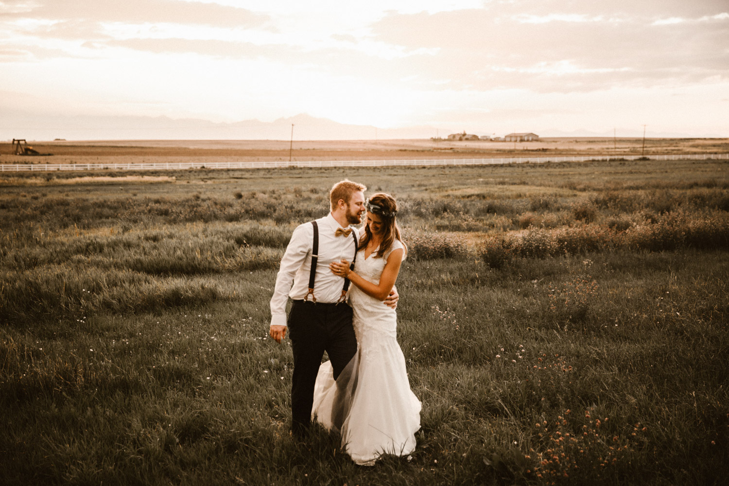 Perfekt vorbereitet war ein Tag später der grosse Moment also da, und obwohl die Trauung erst um 17:30 Uhr abends stattfand, begannen die Vorbereitungen (Haare & Make-Up) schon am Mittag. Ich glaube, man kann sich das Chaos lebhaft vorstellen, wenn eine Braut, 6 Trauzeuginnen und 6 kleine Mädchen in einem einzigen Raum parat gemacht werden müssen. Zwischendurch bin ich manchmal schnell ins Haus gegenüber gehuscht, denn da haben sich die “boys” vorbereitet: sie haben erstmal eine Runde Karten- oder Videospiele gespielt. Eine Ruheoase im Vergleich zum Haus nebenan! 37 Grad warm war es, und genau in dem Moment, in dem wir für die Fotos der bridal party nach draussen wollten, begann es zu regnen. “The weather in Colorado is safe in July” hat mir Camrianne ursprünglich mal gesagt – tja, nicht an dem Tag! Glücklicherweise hat es bald wieder aufgehört, und im Nachhinein waren wir ganz froh darum, denn so hat es ein bisschen abgekühlt. Nachdem wir die Gruppenfotos hinter uns gebracht hatten, wurde es langsam konkret. Eine kurze, aber wunderschöne und sehr lustige Trauung später war das Ganze auch schon vorbei und der Abend konnte beginnen. Ein lang gehegter Traum von mir ging auch da in Erfüllung: das Dinner fand unter freiem Himmel statt, dekoriert mit diesen wunderschönen Lichterketten aus Glühbirnen! Zur perfekten Zeit bei Sonnenuntergang habe ich die beiden kurz für ein perfektes Shooting entführt, denn wie ich oft meinen Brautpaaren sage: Viel Zeit braucht man dafür nicht (30-45min), aber perfektes Licht (bei Sonnenuntergang) ist so wichtig! Darauf folgten noch ein paar Reden, der klassische “first dance” wie auch der Vater-Tochter-Tanz – auch das auf einer Tanzfläche, die mit wunderschönen Lichterketten beleuchtet war. Fotografisch anspruchsvoll, aber einfach nur schön. Der “sparkler exit” am Schluss hat mir einen weiteren fotografischen Traum erfüllt, und so ging ein wunderschöner, aber sehr anstrengender Tag zu Ende. Zwei Tage und noch einem kurzen Besuch im Rocky Mountain National Park später bin ich mit ganz viel neuen Erlebnissen (und unzähligen gut und mehrfach gesicherten Fotos) zurück in die Schweiz geflogen. Danke an alle, die das ermöglicht haben – ein unglaubliches Erlebnis.