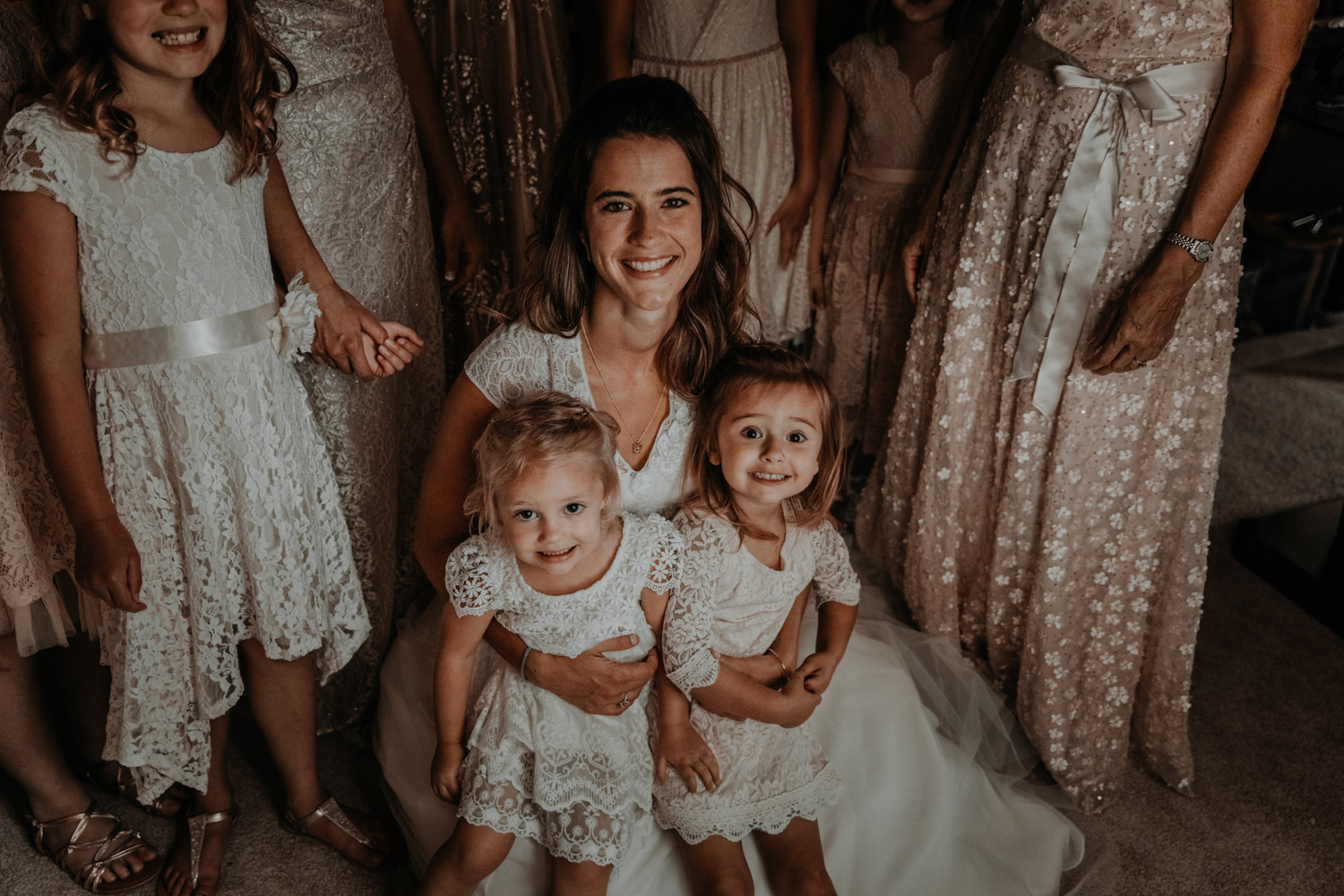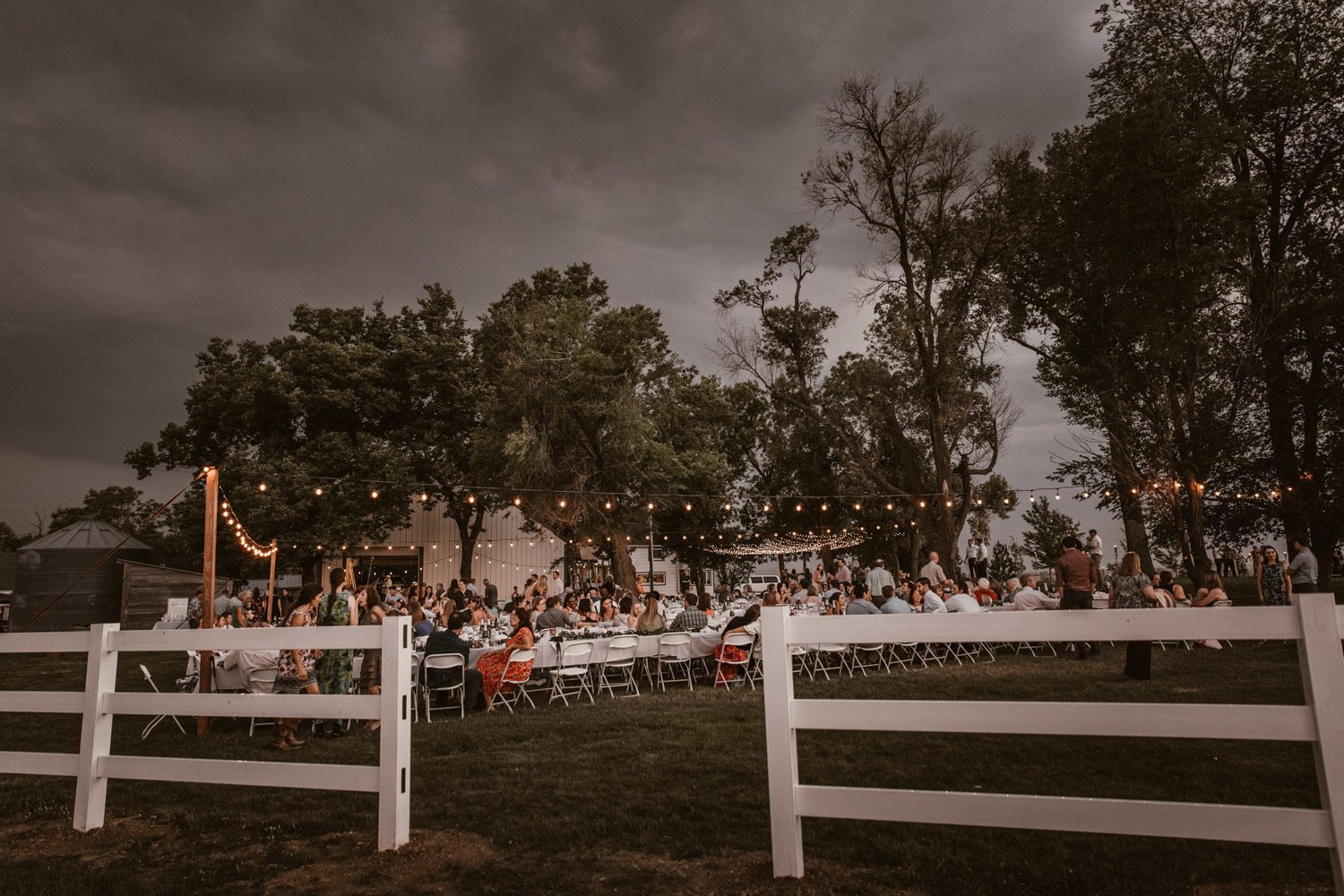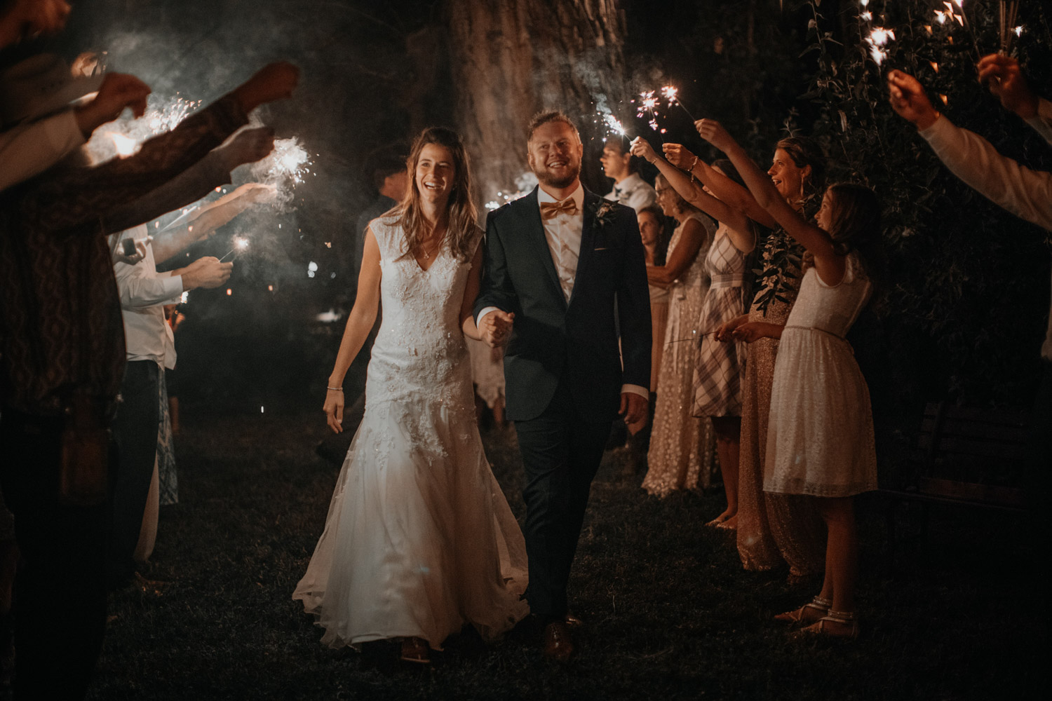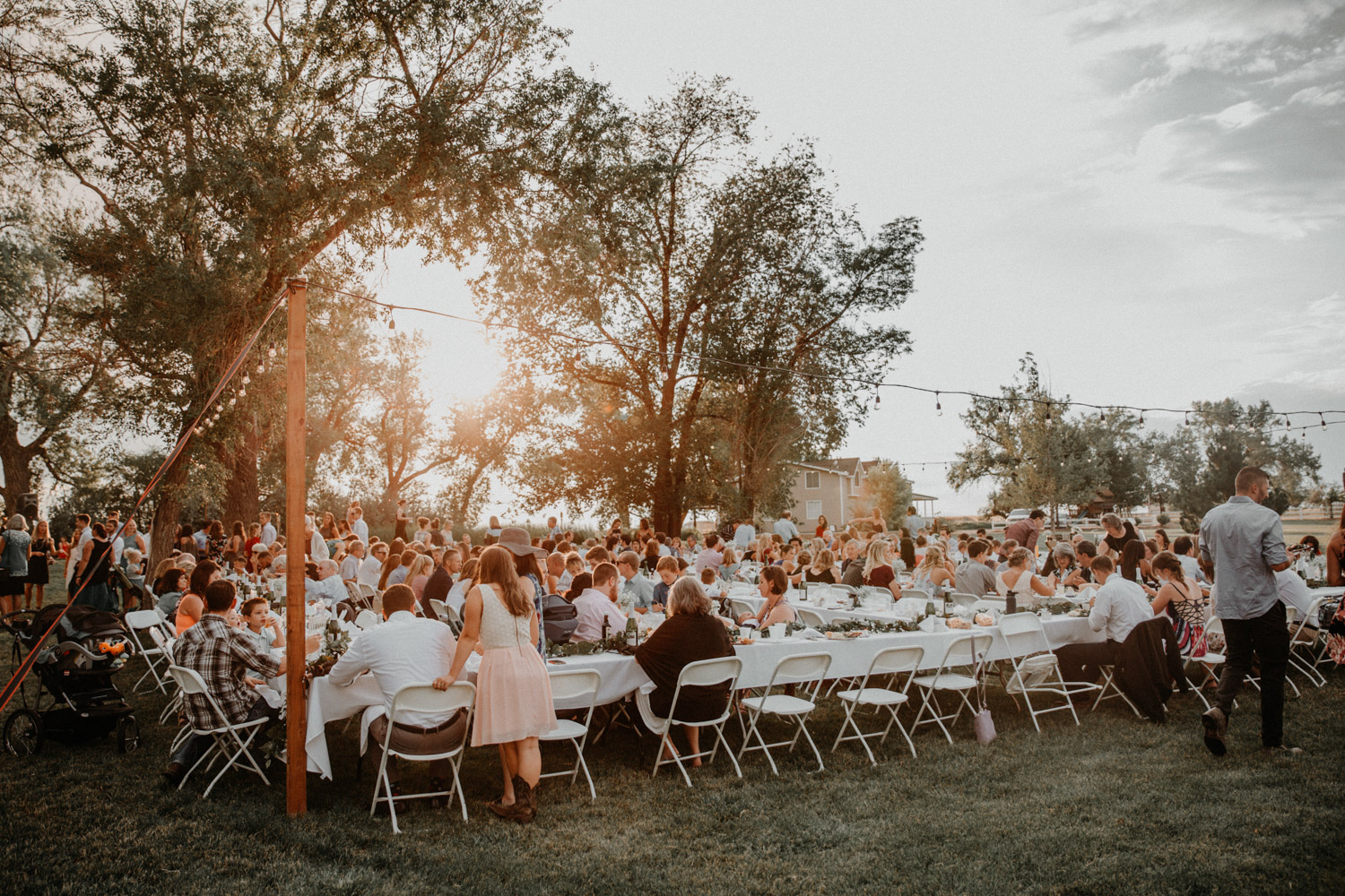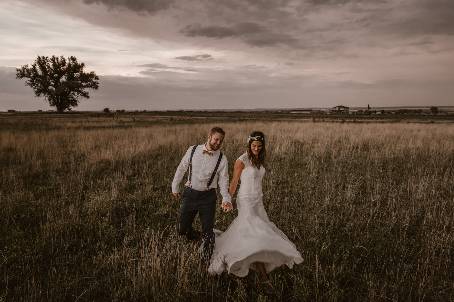 Perfekt vorbereitet war ein Tag später der grosse Moment also da, und obwohl die Trauung erst um 17:30 Uhr abends stattfand, begannen die Vorbereitungen (Haare & Make-Up) schon am Mittag. Ich glaube, man kann sich das Chaos lebhaft vorstellen, wenn eine Braut, 6 Trauzeuginnen und 6 kleine Mädchen in einem einzigen Raum parat gemacht werden müssen. Zwischendurch bin ich manchmal schnell ins Haus gegenüber gehuscht, denn da haben sich die “boys” vorbereitet: sie haben erstmal eine Runde Karten- oder Videospiele gespielt. Eine Ruheoase im Vergleich zum Haus nebenan! 37 Grad warm war es, und genau in dem Moment, in dem wir für die Fotos der bridal party nach draussen wollten, begann es zu regnen. “The weather in Colorado is safe in July” hat mir Camrianne ursprünglich mal gesagt – tja, nicht an dem Tag! Glücklicherweise hat es bald wieder aufgehört, und im Nachhinein waren wir ganz froh darum, denn so hat es ein bisschen abgekühlt. Nachdem wir die Gruppenfotos hinter uns gebracht hatten, wurde es langsam konkret. Eine kurze, aber wunderschöne und sehr lustige Trauung später war das Ganze auch schon vorbei und der Abend konnte beginnen. Ein lang gehegter Traum von mir ging auch da in Erfüllung: das Dinner fand unter freiem Himmel statt, dekoriert mit diesen wunderschönen Lichterketten aus Glühbirnen! Zur perfekten Zeit bei Sonnenuntergang habe ich die beiden kurz für ein perfektes Shooting entführt, denn wie ich oft meinen Brautpaaren sage: Viel Zeit braucht man dafür nicht (30-45min), aber perfektes Licht (bei Sonnenuntergang) ist so wichtig! Darauf folgten noch ein paar Reden, der klassische “first dance” wie auch der Vater-Tochter-Tanz – auch das auf einer Tanzfläche, die mit wunderschönen Lichterketten beleuchtet war. Fotografisch anspruchsvoll, aber einfach nur schön. Der “sparkler exit” am Schluss hat mir einen weiteren fotografischen Traum erfüllt, und so ging ein wunderschöner, aber sehr anstrengender Tag zu Ende. Zwei Tage und noch einem kurzen Besuch im Rocky Mountain National Park später bin ich mit ganz viel neuen Erlebnissen (und unzähligen gut und mehrfach gesicherten Fotos) zurück in die Schweiz geflogen. Danke an alle, die das ermöglicht haben – ein unglaubliches Erlebnis.