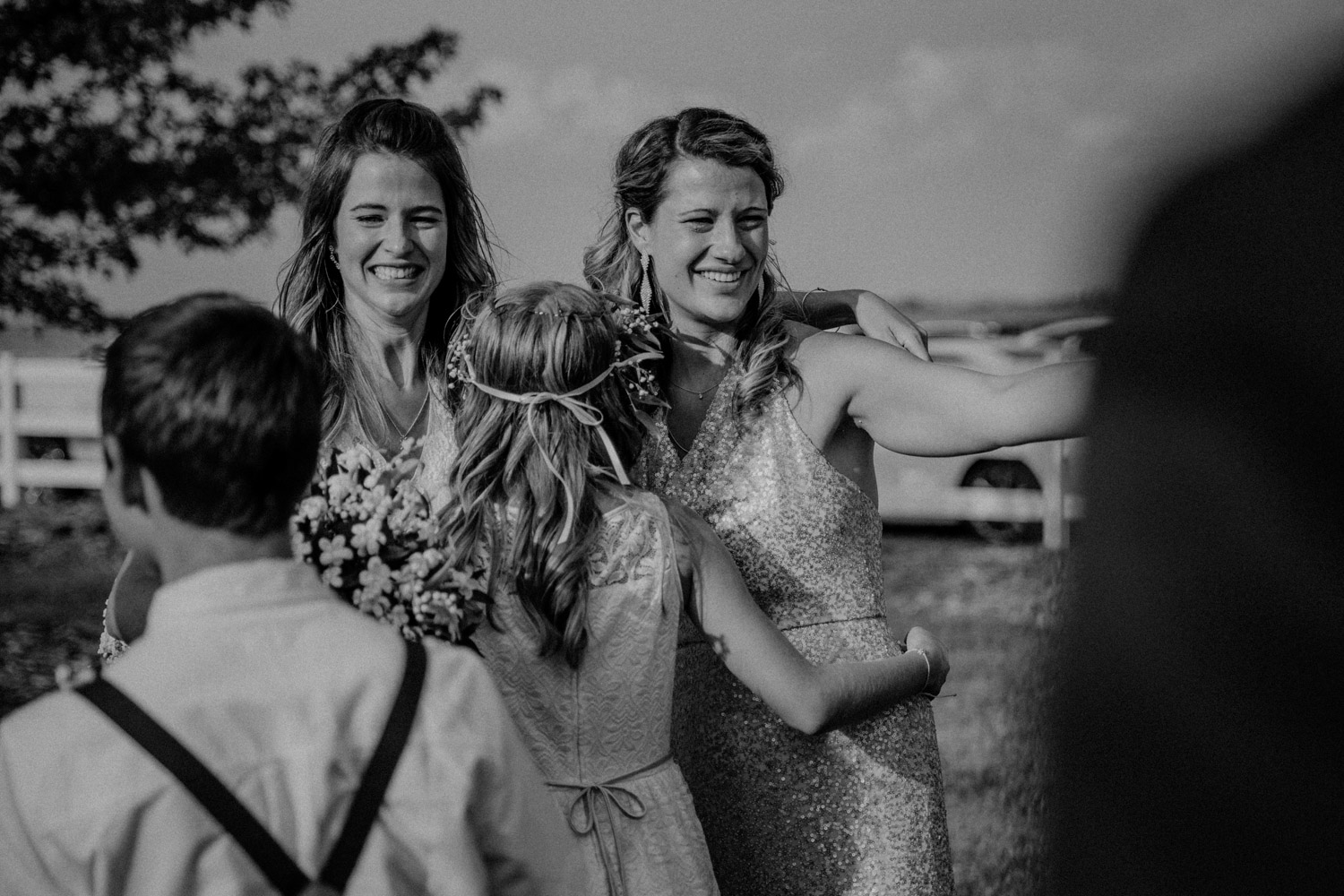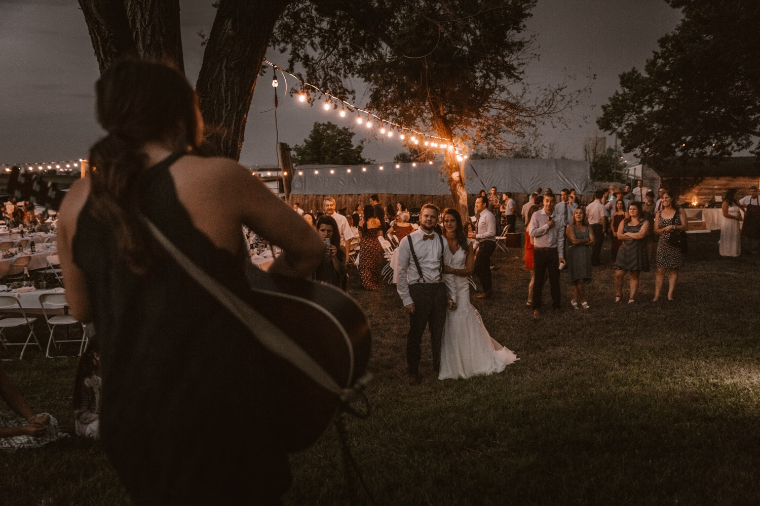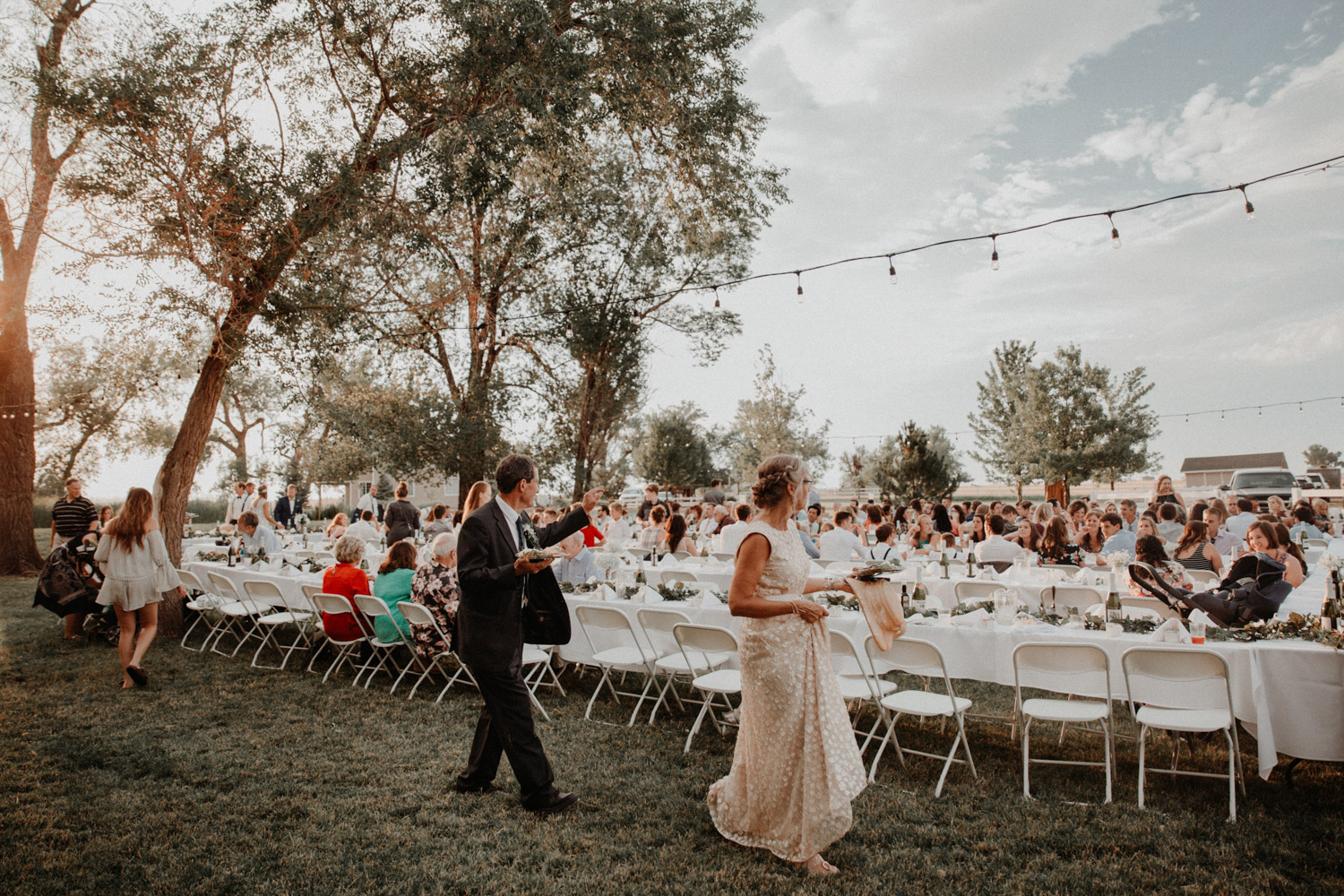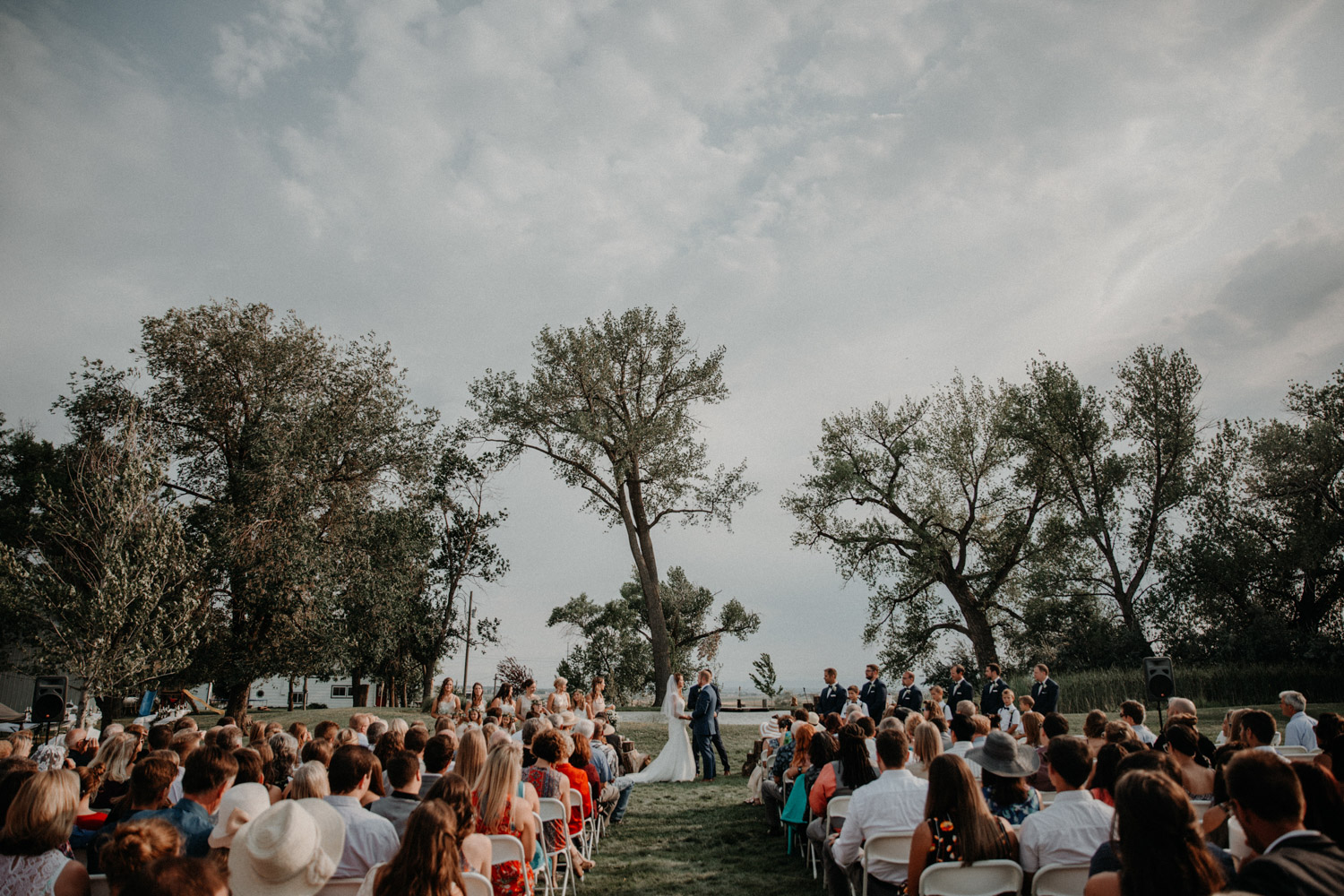 Perfekt vorbereitet war ein Tag später der grosse Moment also da, und obwohl die Trauung erst um 17:30 Uhr abends stattfand, begannen die Vorbereitungen (Haare & Make-Up) schon am Mittag. Ich glaube, man kann sich das Chaos lebhaft vorstellen, wenn eine Braut, 6 Trauzeuginnen und 6 kleine Mädchen in einem einzigen Raum parat gemacht werden müssen. Zwischendurch bin ich manchmal schnell ins Haus gegenüber gehuscht, denn da haben sich die “boys” vorbereitet: sie haben erstmal eine Runde Karten- oder Videospiele gespielt. Eine Ruheoase im Vergleich zum Haus nebenan! 37 Grad warm war es, und genau in dem Moment, in dem wir für die Fotos der bridal party nach draussen wollten, begann es zu regnen. “The weather in Colorado is safe in July” hat mir Camrianne ursprünglich mal gesagt – tja, nicht an dem Tag! Glücklicherweise hat es bald wieder aufgehört, und im Nachhinein waren wir ganz froh darum, denn so hat es ein bisschen abgekühlt. Nachdem wir die Gruppenfotos hinter uns gebracht hatten, wurde es langsam konkret. Eine kurze, aber wunderschöne und sehr lustige Trauung später war das Ganze auch schon vorbei und der Abend konnte beginnen. Ein lang gehegter Traum von mir ging auch da in Erfüllung: das Dinner fand unter freiem Himmel statt, dekoriert mit diesen wunderschönen Lichterketten aus Glühbirnen! Zur perfekten Zeit bei Sonnenuntergang habe ich die beiden kurz für ein perfektes Shooting entführt, denn wie ich oft meinen Brautpaaren sage: Viel Zeit braucht man dafür nicht (30-45min), aber perfektes Licht (bei Sonnenuntergang) ist so wichtig! Darauf folgten noch ein paar Reden, der klassische “first dance” wie auch der Vater-Tochter-Tanz – auch das auf einer Tanzfläche, die mit wunderschönen Lichterketten beleuchtet war. Fotografisch anspruchsvoll, aber einfach nur schön. Der “sparkler exit” am Schluss hat mir einen weiteren fotografischen Traum erfüllt, und so ging ein wunderschöner, aber sehr anstrengender Tag zu Ende. Zwei Tage und noch einem kurzen Besuch im Rocky Mountain National Park später bin ich mit ganz viel neuen Erlebnissen (und unzähligen gut und mehrfach gesicherten Fotos) zurück in die Schweiz geflogen. Danke an alle, die das ermöglicht haben – ein unglaubliches Erlebnis.
