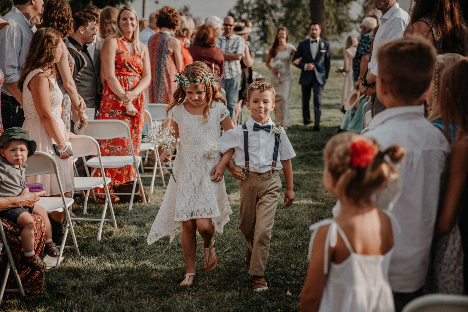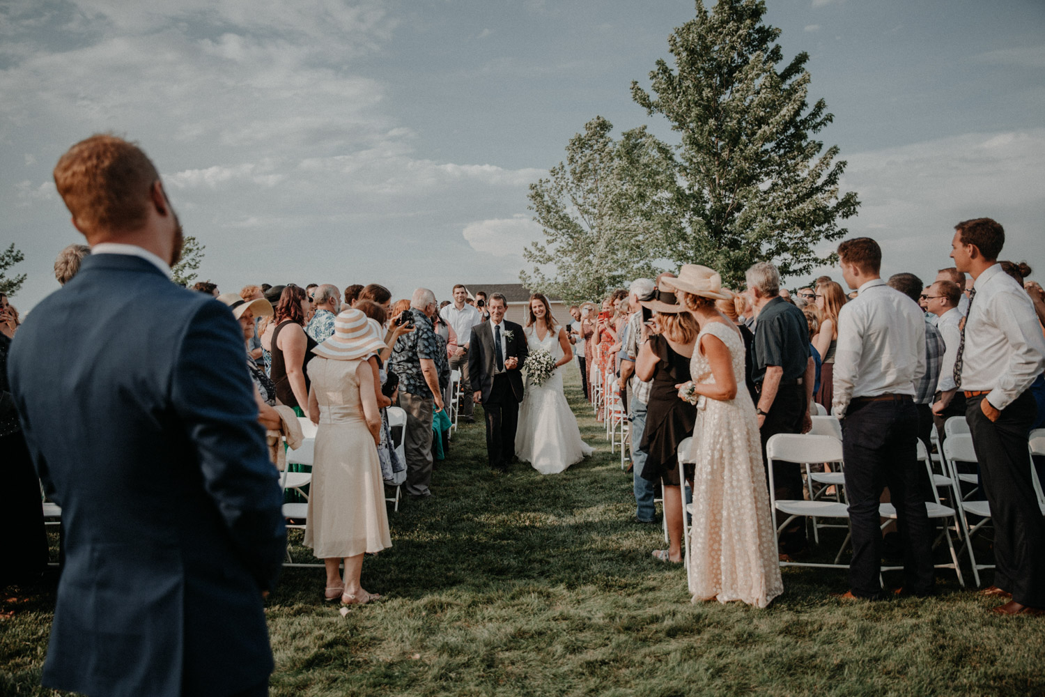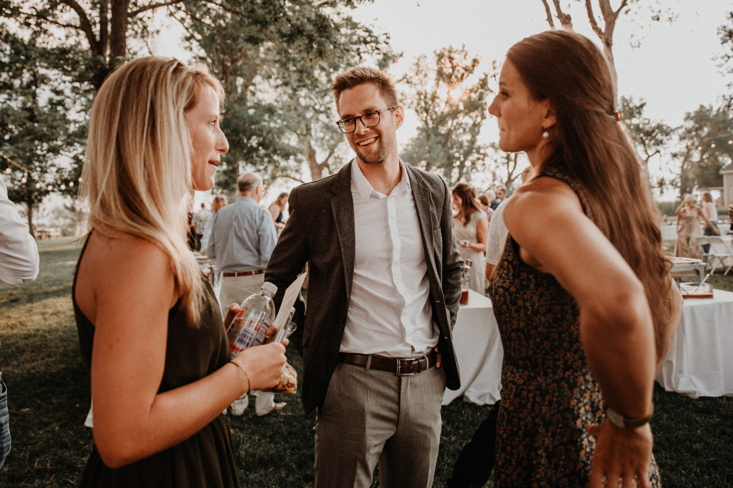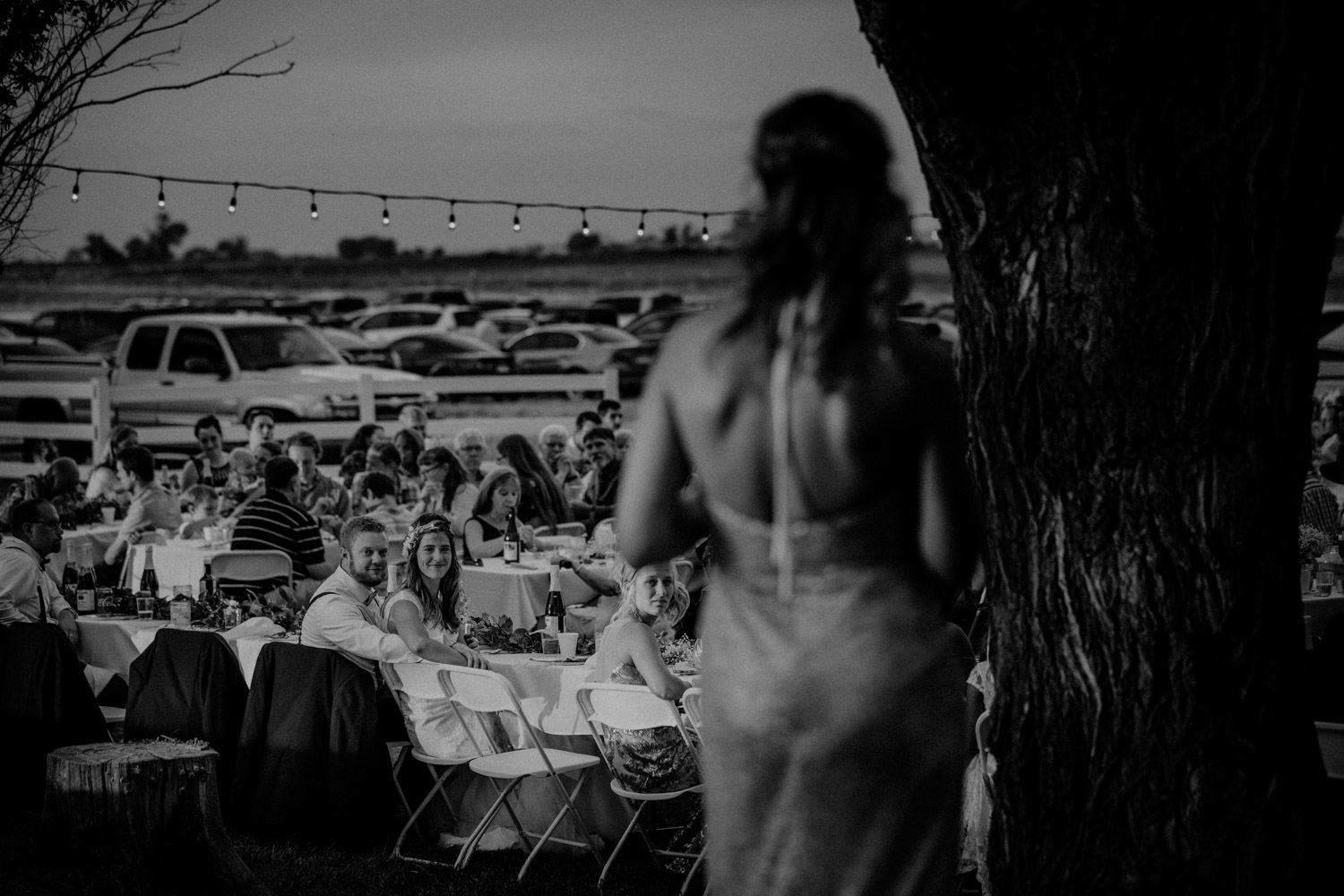 Perfekt vorbereitet war ein Tag später der grosse Moment also da, und obwohl die Trauung erst um 17:30 Uhr abends stattfand, begannen die Vorbereitungen (Haare & Make-Up) schon am Mittag. Ich glaube, man kann sich das Chaos lebhaft vorstellen, wenn eine Braut, 6 Trauzeuginnen und 6 kleine Mädchen in einem einzigen Raum parat gemacht werden müssen. Zwischendurch bin ich manchmal schnell ins Haus gegenüber gehuscht, denn da haben sich die “boys” vorbereitet: sie haben erstmal eine Runde Karten- oder Videospiele gespielt. Eine Ruheoase im Vergleich zum Haus nebenan! 37 Grad warm war es, und genau in dem Moment, in dem wir für die Fotos der bridal party nach draussen wollten, begann es zu regnen. “The weather in Colorado is safe in July” hat mir Camrianne ursprünglich mal gesagt – tja, nicht an dem Tag! Glücklicherweise hat es bald wieder aufgehört, und im Nachhinein waren wir ganz froh darum, denn so hat es ein bisschen abgekühlt. Nachdem wir die Gruppenfotos hinter uns gebracht hatten, wurde es langsam konkret. Eine kurze, aber wunderschöne und sehr lustige Trauung später war das Ganze auch schon vorbei und der Abend konnte beginnen. Ein lang gehegter Traum von mir ging auch da in Erfüllung: das Dinner fand unter freiem Himmel statt, dekoriert mit diesen wunderschönen Lichterketten aus Glühbirnen! Zur perfekten Zeit bei Sonnenuntergang habe ich die beiden kurz für ein perfektes Shooting entführt, denn wie ich oft meinen Brautpaaren sage: Viel Zeit braucht man dafür nicht (30-45min), aber perfektes Licht (bei Sonnenuntergang) ist so wichtig! Darauf folgten noch ein paar Reden, der klassische “first dance” wie auch der Vater-Tochter-Tanz – auch das auf einer Tanzfläche, die mit wunderschönen Lichterketten beleuchtet war. Fotografisch anspruchsvoll, aber einfach nur schön. Der “sparkler exit” am Schluss hat mir einen weiteren fotografischen Traum erfüllt, und so ging ein wunderschöner, aber sehr anstrengender Tag zu Ende. Zwei Tage und noch einem kurzen Besuch im Rocky Mountain National Park später bin ich mit ganz viel neuen Erlebnissen (und unzähligen gut und mehrfach gesicherten Fotos) zurück in die Schweiz geflogen. Danke an alle, die das ermöglicht haben – ein unglaubliches Erlebnis.
