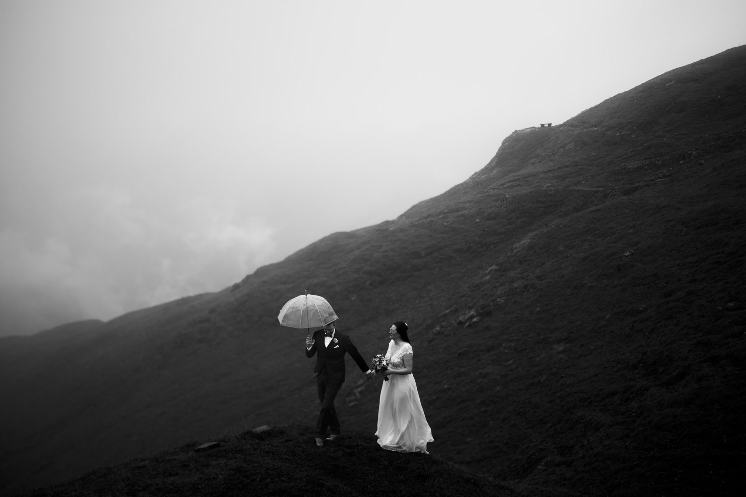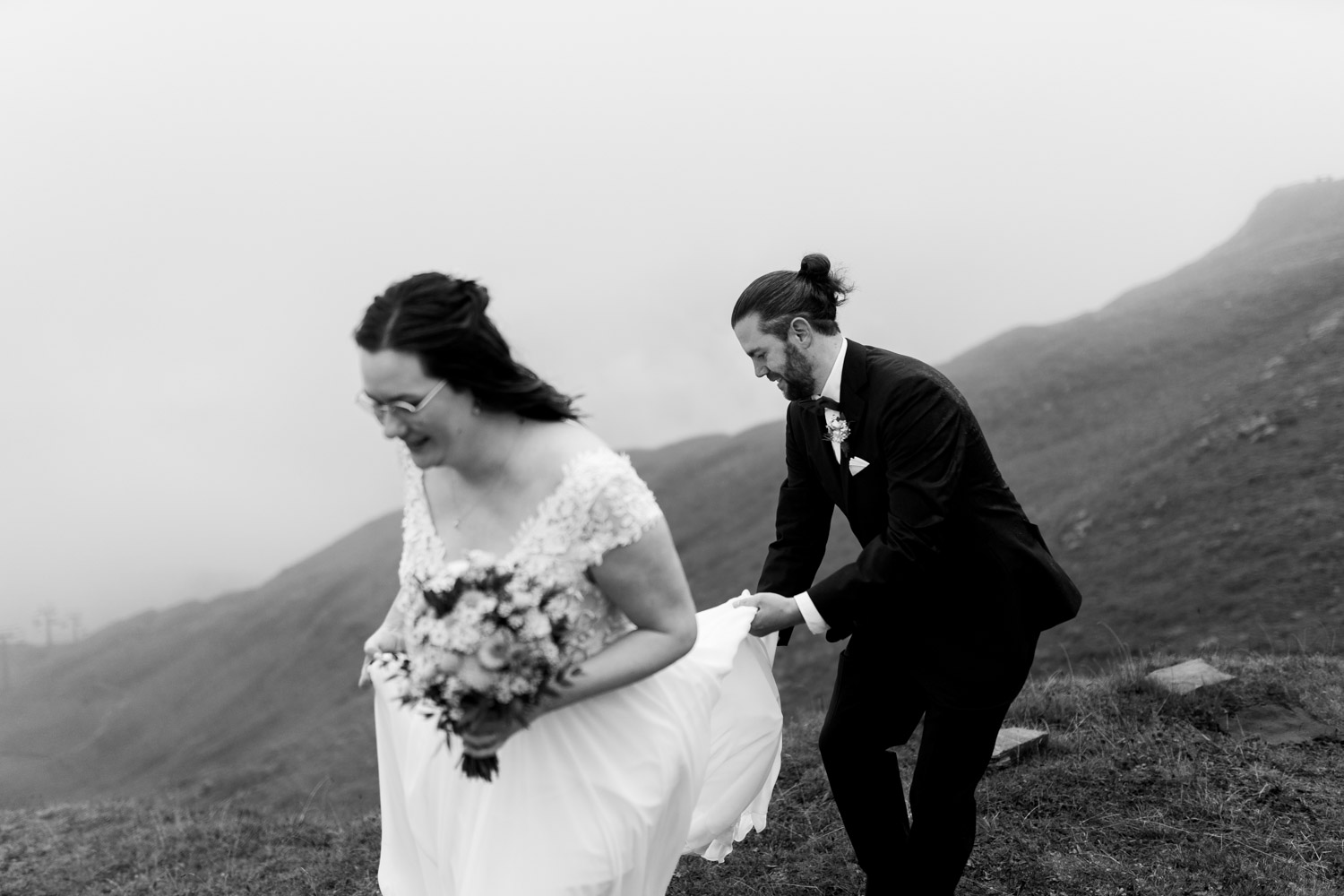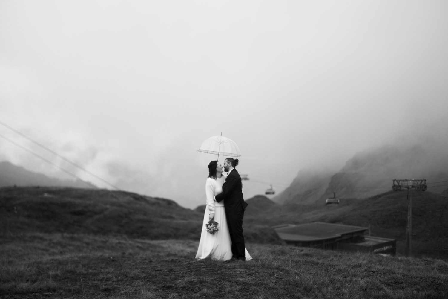 And finally, after a long aperitif in the ever-changing mountain weather, we caught a lucky break: a short, dry window with even a little bit of sunshine. We used it for a quick couple shoot, and those photos are definitely among my personal highlights of this year.