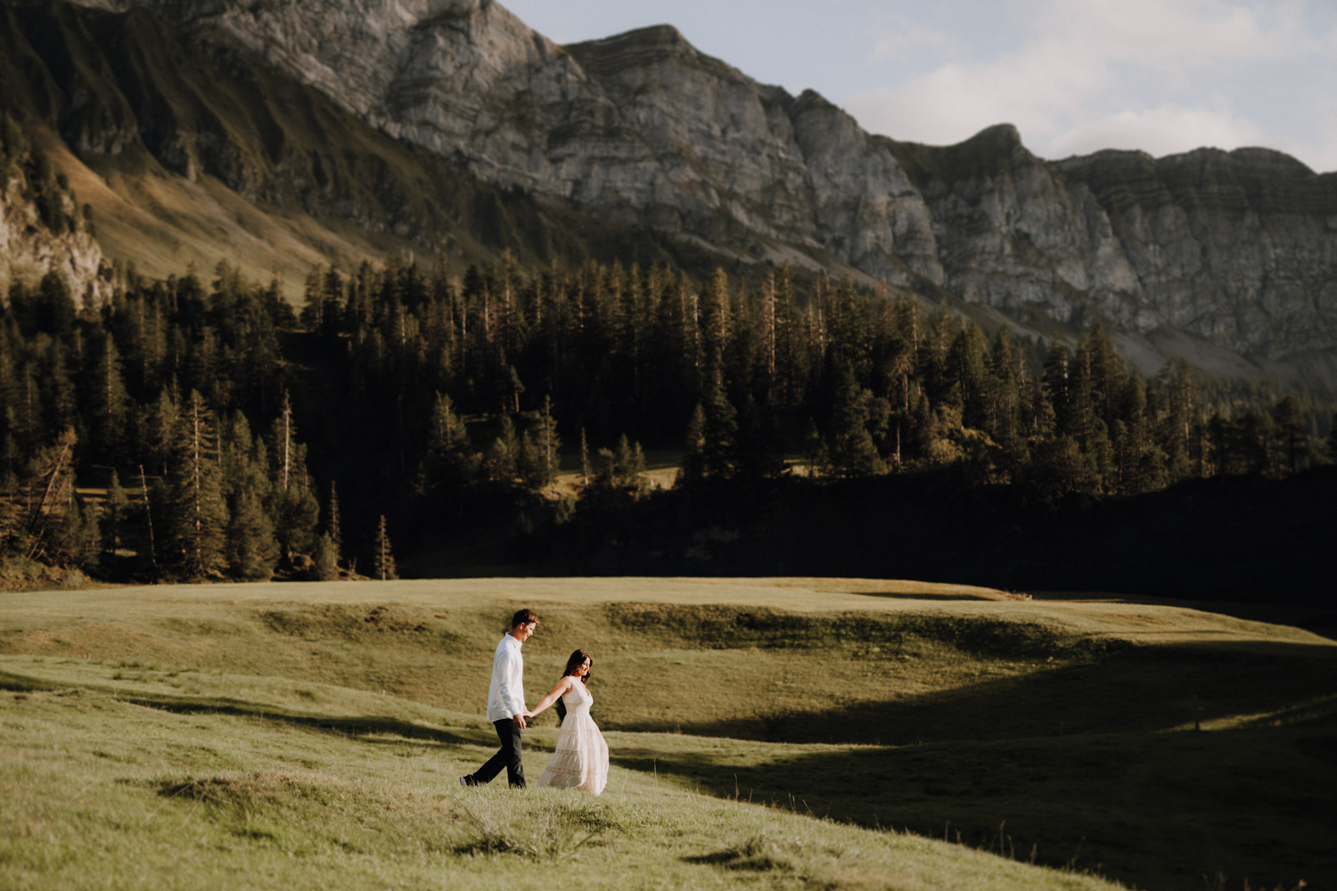 Brooklin and Clayton live in Oklahoma and met each other at school. They got married two years ago and have now traveled through Italy and Switzerland within eight days for their two-year anniversary. For this occasion, they decided to do a couple shoot in Switzerland, and I was very happy to have the chance to take their pictures. Interlaken, Pilatus, Grindelwald… it’s all beautiful for sure, but I love the Niederbauen 🙂 In particular for photo shoots, as the incredibly accommodating operators of the cable car there make it possible for me to take an extra ride down after sunset. Again, we were incredibly lucky with the weather and spent a beautiful evening in the fresh mountain air, hiking past cow barns and pastures and sharing stories about our lives in Switzerland and the States. Thank you Brooklin & Clayton!