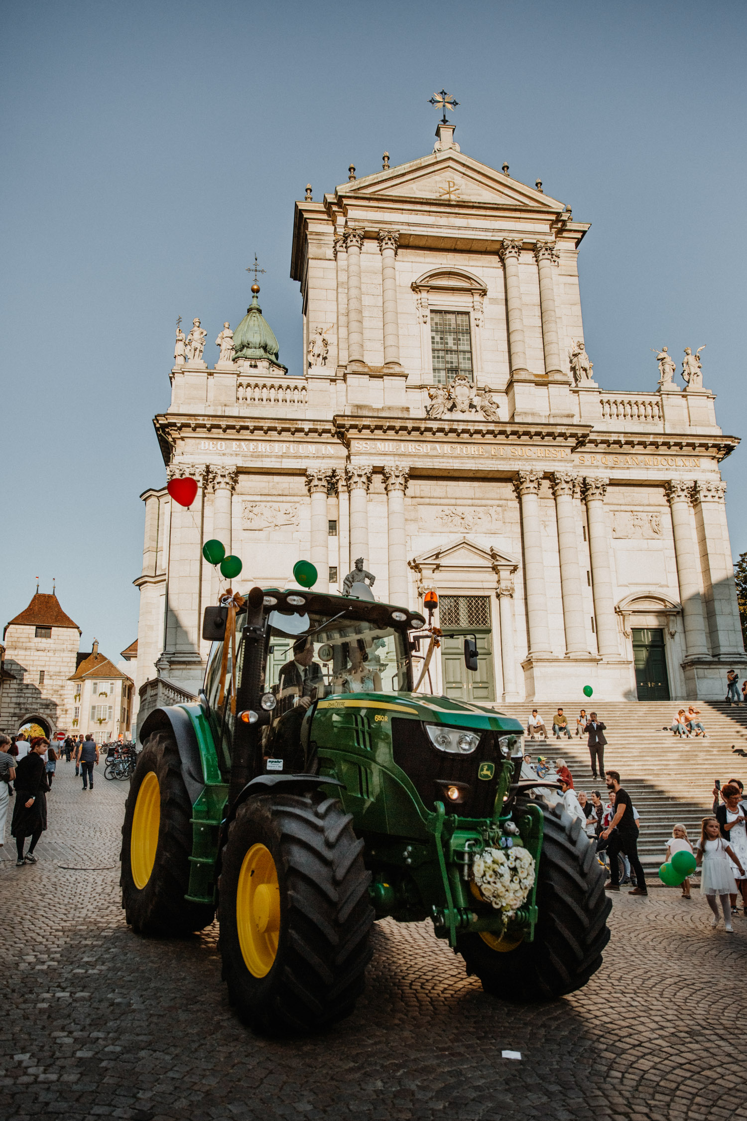 When we returned, a very special “car” was waiting for the two – a tractor! I personally ride horses, and many of my clients are also horse people – these two were no exception! They run an equestrian centre together, and while Chrissi is more responsible for the riding, Silvan looks after the farming part of the business… and that’s how they ended up driving through the old town of Solothurn in a tractor! It was so incredibly cool. Thank you to all the people involved who made this such a special day – not just for the bride and groom, but also for me as their wedding photographer!
