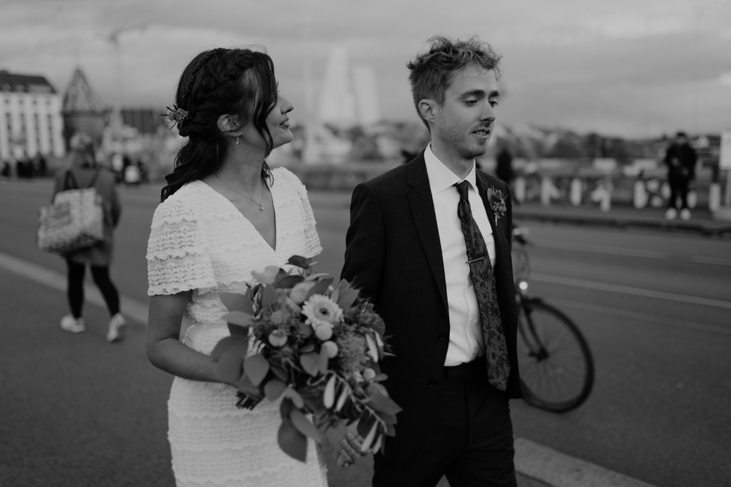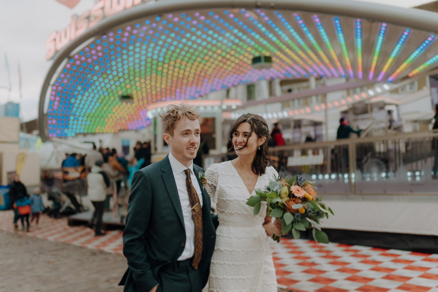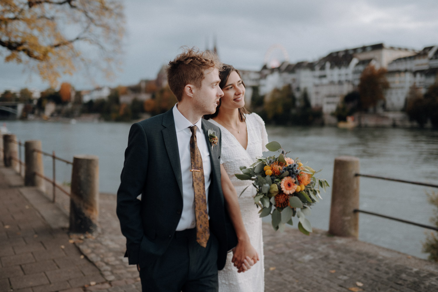 Magalie and Dominic contacted me very last minute, just a few weeks before the wedding, as they had managed to secure a slot at the Civil Registry Office in Basel on short notice. Dominic is from the UK, and it seems that Brexit had brought about some additional paperwork for eager couples. However, it all worked out in the end, and I was immediately excited when I realized that the Basel Autumn Fair was taking place at the same time. After the ceremony, we wandered through the entire city of Basel, capturing photos at various locations amidst the lights of the Autumn Fair and many other charming spots in Basel that I adore. What a beautiful city, time and time again! Thank you, Magalie & Dominic, for your trust!