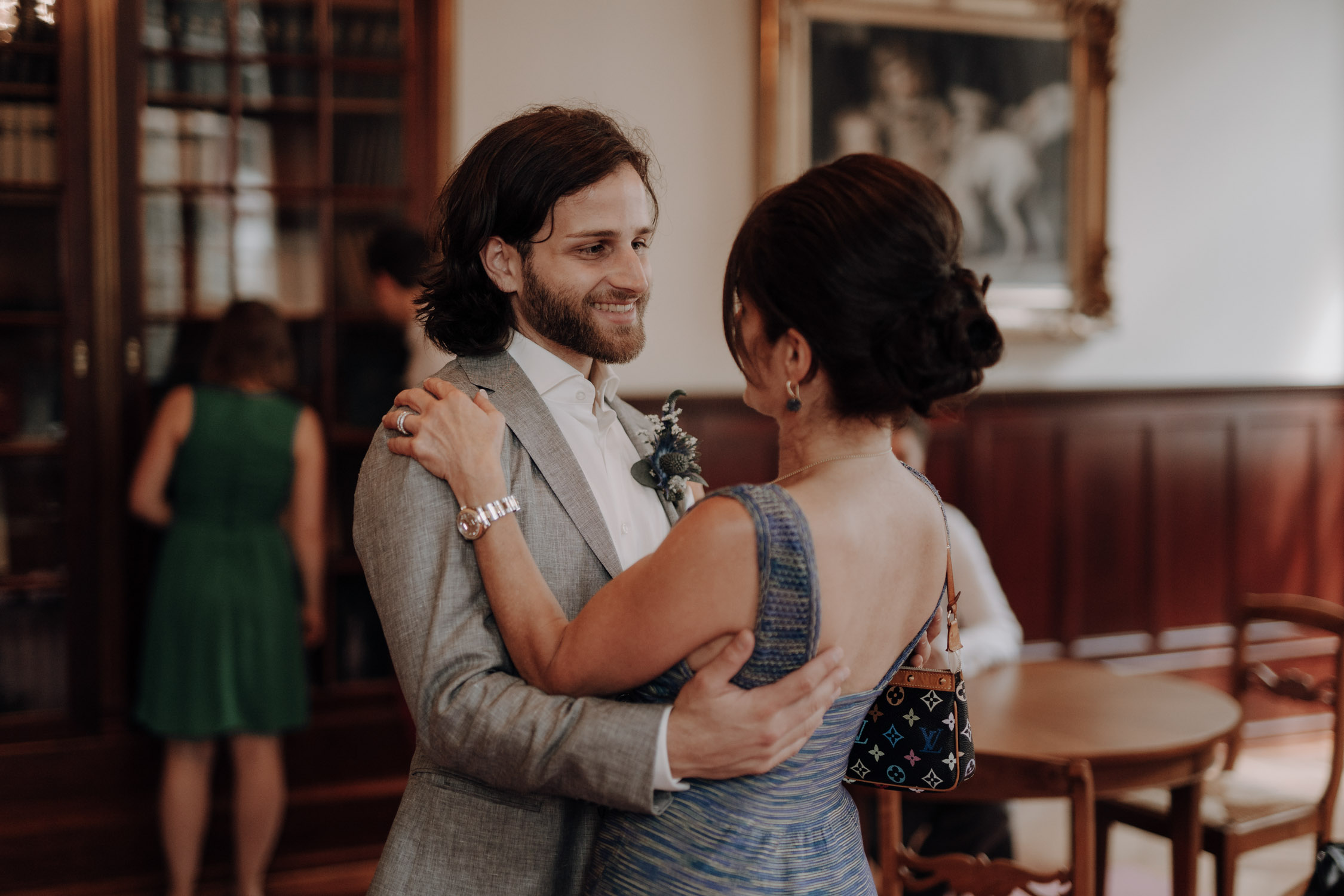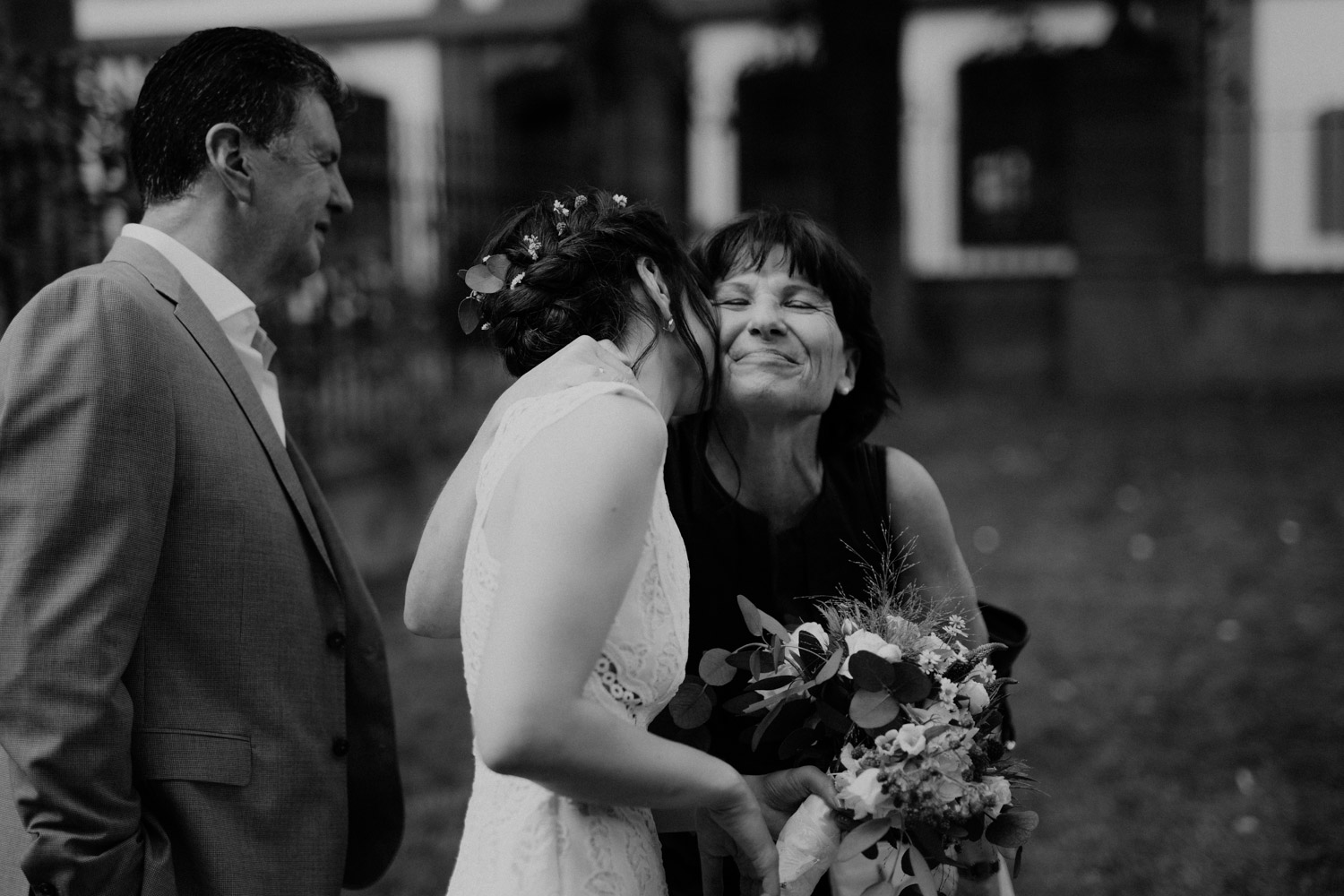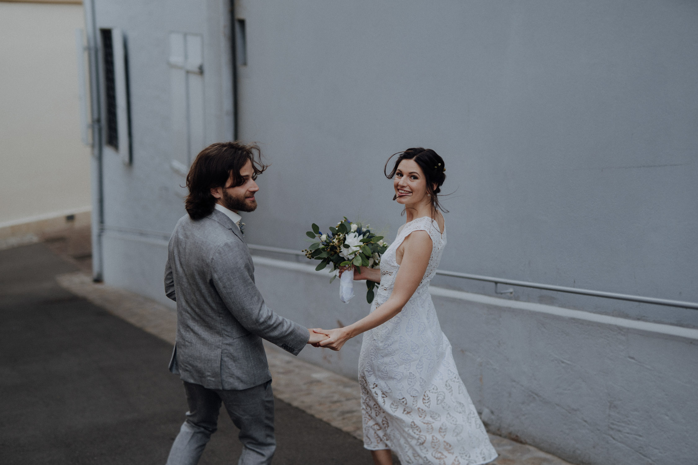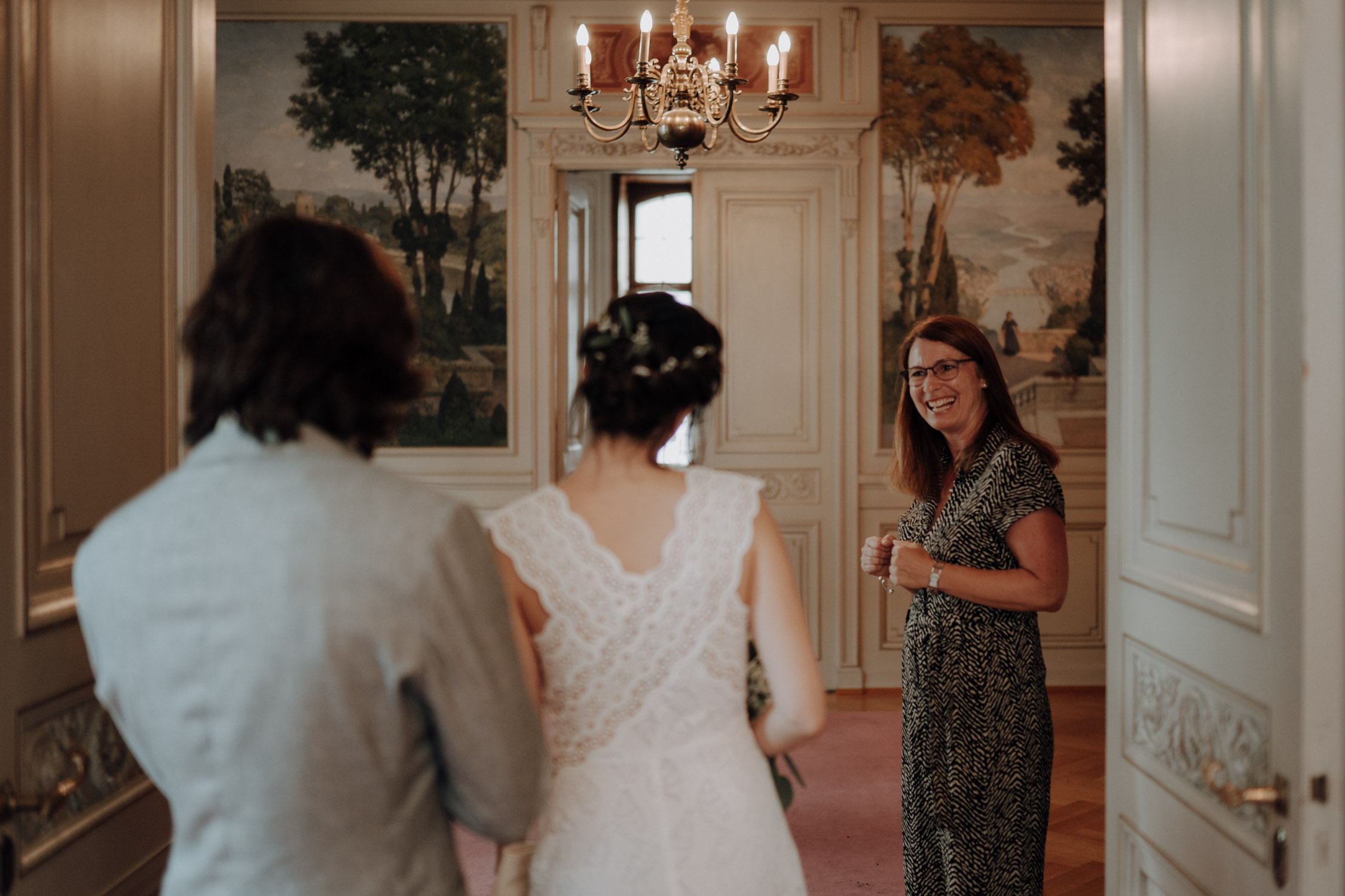 When I read Nina’s first e-mail, I already knew that this wedding would be so much fun. Originally, there was supposed to be a small official wedding, followed by a big wedding party later, but due to the current Coronavirus situation, the big wedding had to be postponed to next year. Luckily, the civil wedding could still be held! I had already been in the Basel registry office a few years before for a wedding and in my opinion, it’s one of the most beautiful offices out there! Its location in the historic centre of Basel is simply perfect and we took advantage of that for a few snaps of the couple before the wedding. After the short but incredibly beautiful wedding, the couple’s families organised a small wine reception and everyone could toast the couple together. Everyone was visibly happy and full of love – that always makes my job as a wedding photographer so much easier. Taking pictures of happy people is just fun!