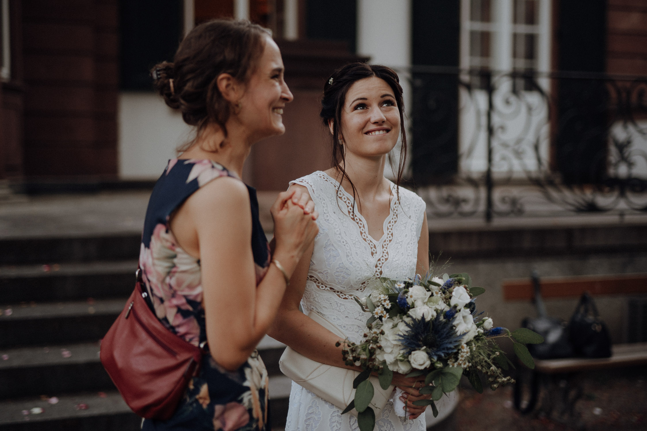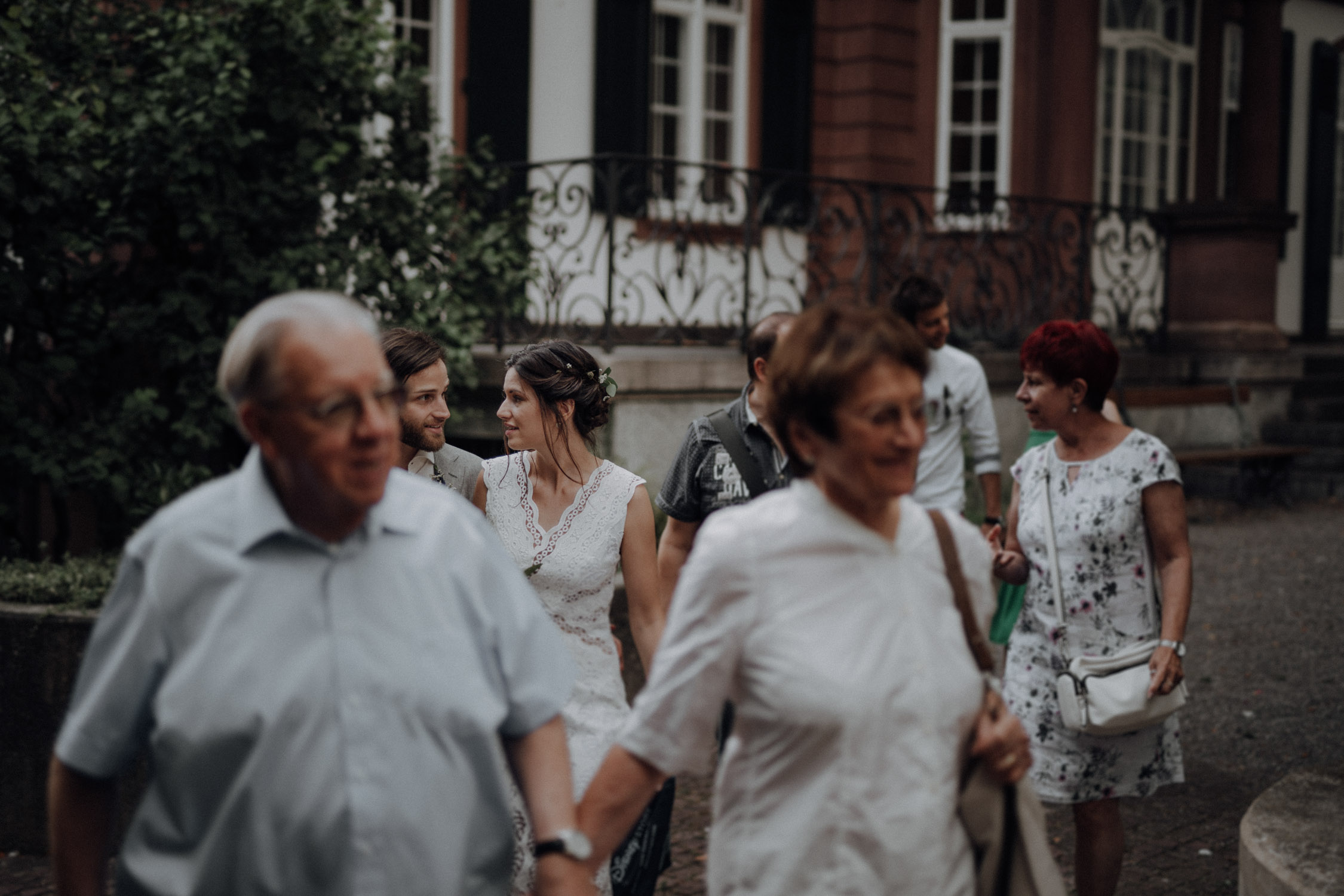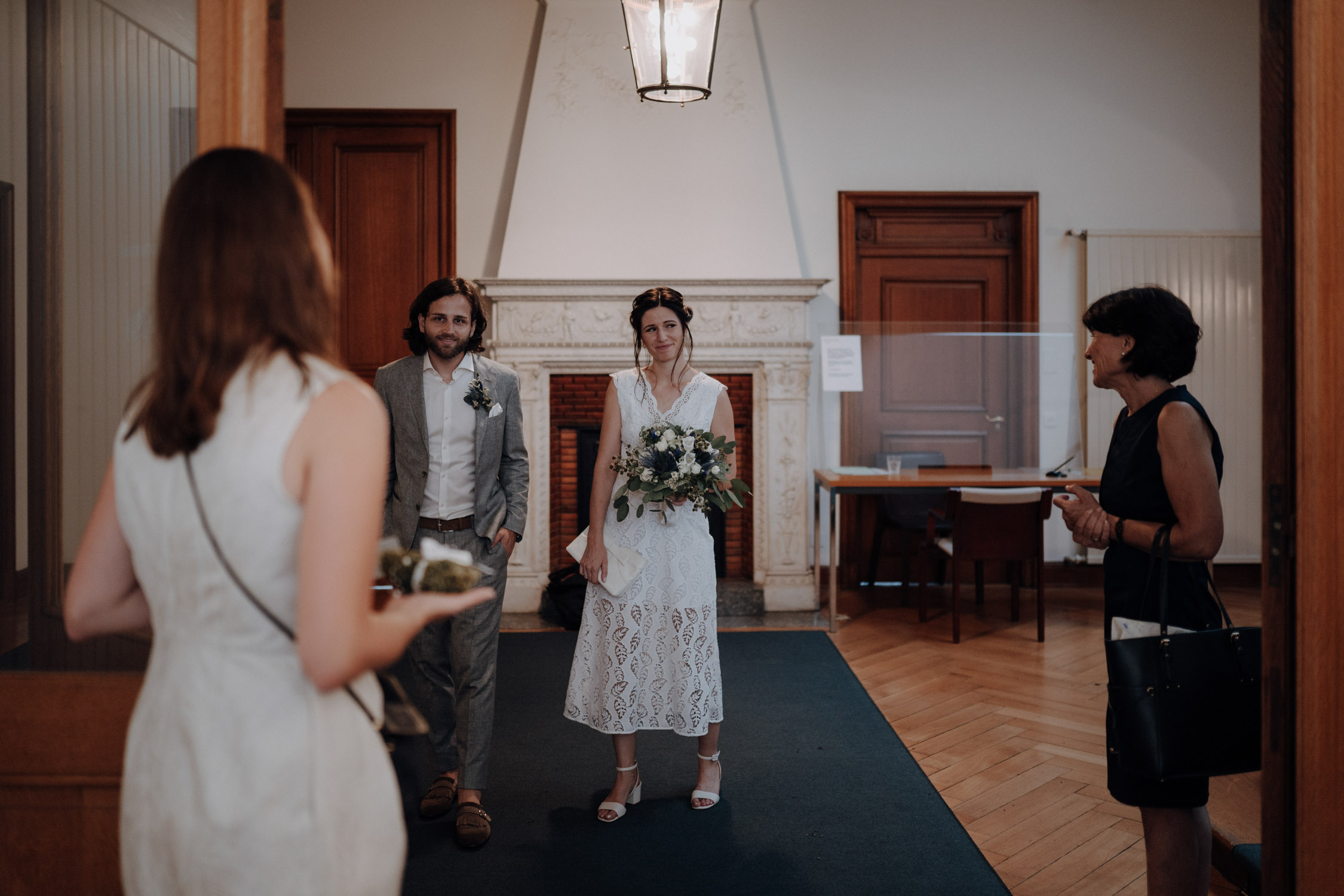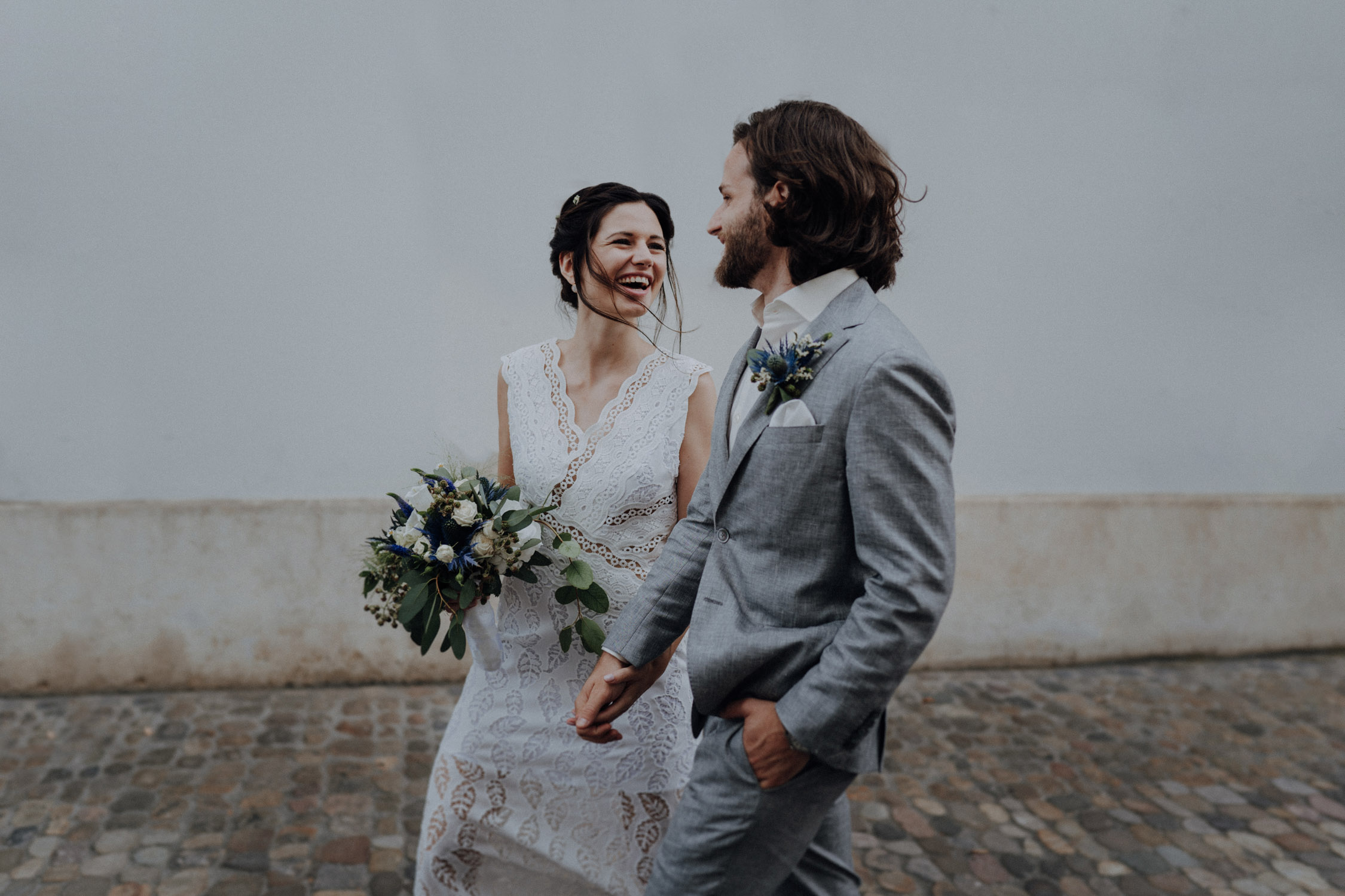 When I read Nina’s first e-mail, I already knew that this wedding would be so much fun. Originally, there was supposed to be a small official wedding, followed by a big wedding party later, but due to the current Coronavirus situation, the big wedding had to be postponed to next year. Luckily, the civil wedding could still be held! I had already been in the Basel registry office a few years before for a wedding and in my opinion, it’s one of the most beautiful offices out there! Its location in the historic centre of Basel is simply perfect and we took advantage of that for a few snaps of the couple before the wedding. After the short but incredibly beautiful wedding, the couple’s families organised a small wine reception and everyone could toast the couple together. Everyone was visibly happy and full of love – that always makes my job as a wedding photographer so much easier. Taking pictures of happy people is just fun!