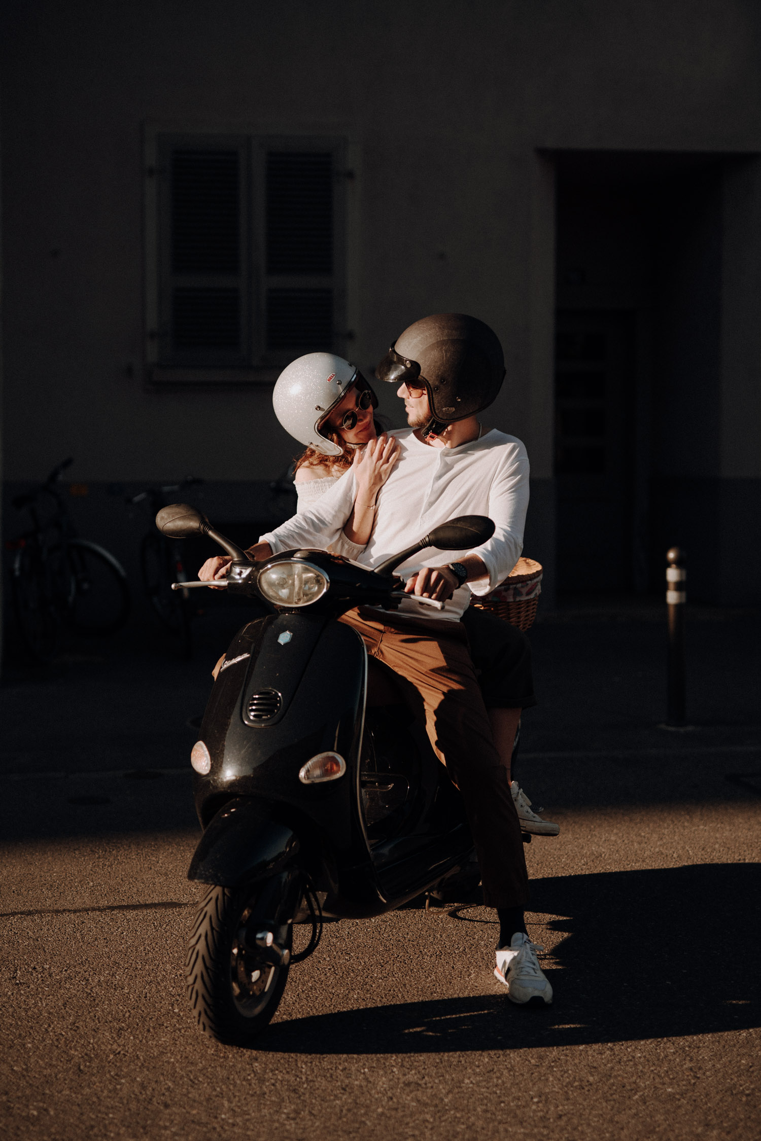 I met Rebecca & Dario in the very early morning for a sunrise engagement shoot, and it was just incredible. Getting up so early is sometimes a bit hard, but these images were so worth it. Rebecca and Dario were very relaxed, we immediately clicked and I can’t wait for their wedding this summer. Scroll down to the very end, because – I didn’t know they owned a small moped, but when they told me I probably got a little bit excited. These two in combination with the light, this lovely moped and a beautiful small old town – it was heaven for me.