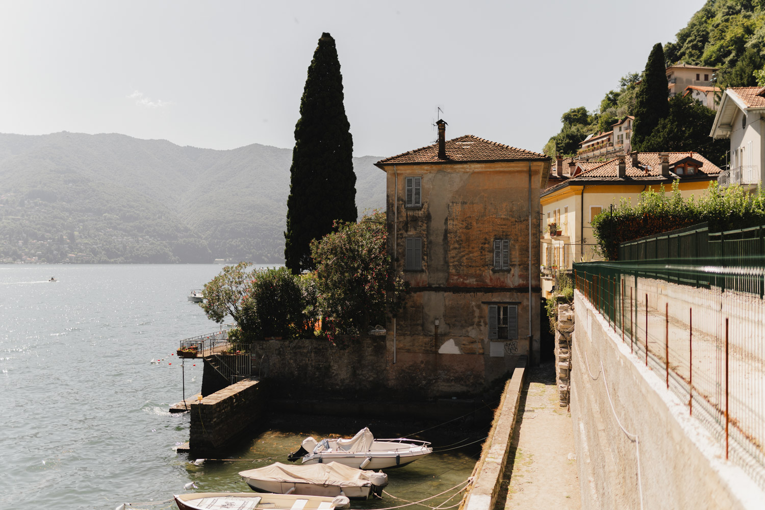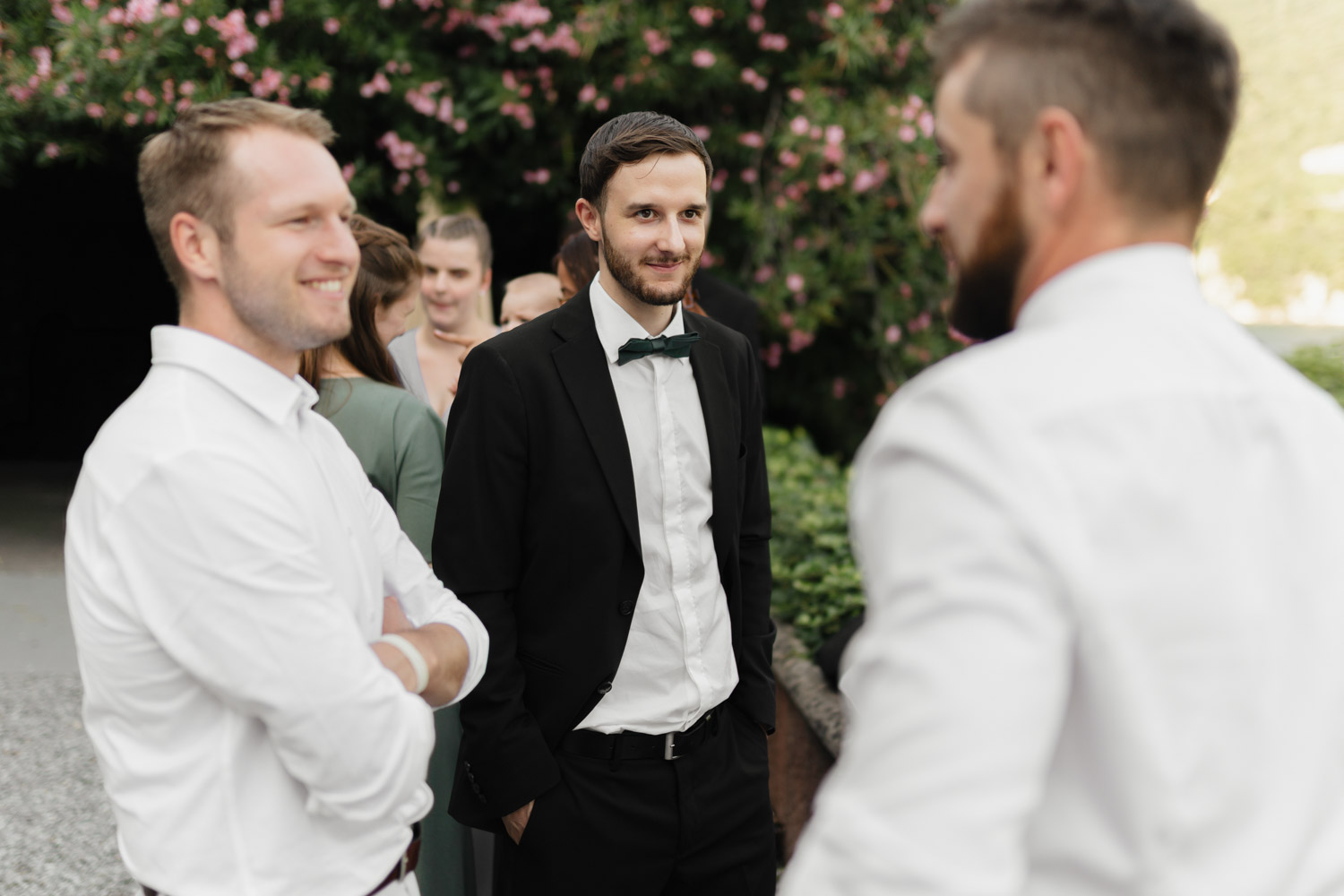 Der Lago di Como ist zu einem richtigen Hochzeits-Mekka geworden, und das hat seine guten Gründe. Einige der wohl schönsten Villen Italiens reihen sich dort aneinander. Die Villa Balbianello ist ein Touristenmagnet, und nur unweit davon befindet sich die Villa Balbiano, in der im Moment alles heiratet, was Rang und Namen hat. Nur ein paar Kilometer weiter im Süden liegt die Villa Regina Teodolinda. Das alte Gebäude ist eine wunderschöne Kulisse, doch das eigentliche Highlight ist der Aussenbereich. Er ist nicht allzu gross, aber genau das bietet einer kleinen bis mittelgrossen Hochzeitsgesellschaft den passenden, intimen Rahmen. Rémy und Sophie haben sich in dieser Region verlobt, und so sollte auch die grosse Hochzeit dort stattfinden. Freunde und Familie sind aus der Schweiz angereist, und am Tag zuvor noch was es nicht so ganz sicher, ob das Wetter mitspielen würde. Am Comersee herrschen manchmal eigene Regeln, was das anbelangt. Doch wir hatten Glück, und die Sonne hat es so gut mit uns gemeint, dass ich es dann doch noch bereut habe, den Sonnenhut zu Hause gelassen zu haben.