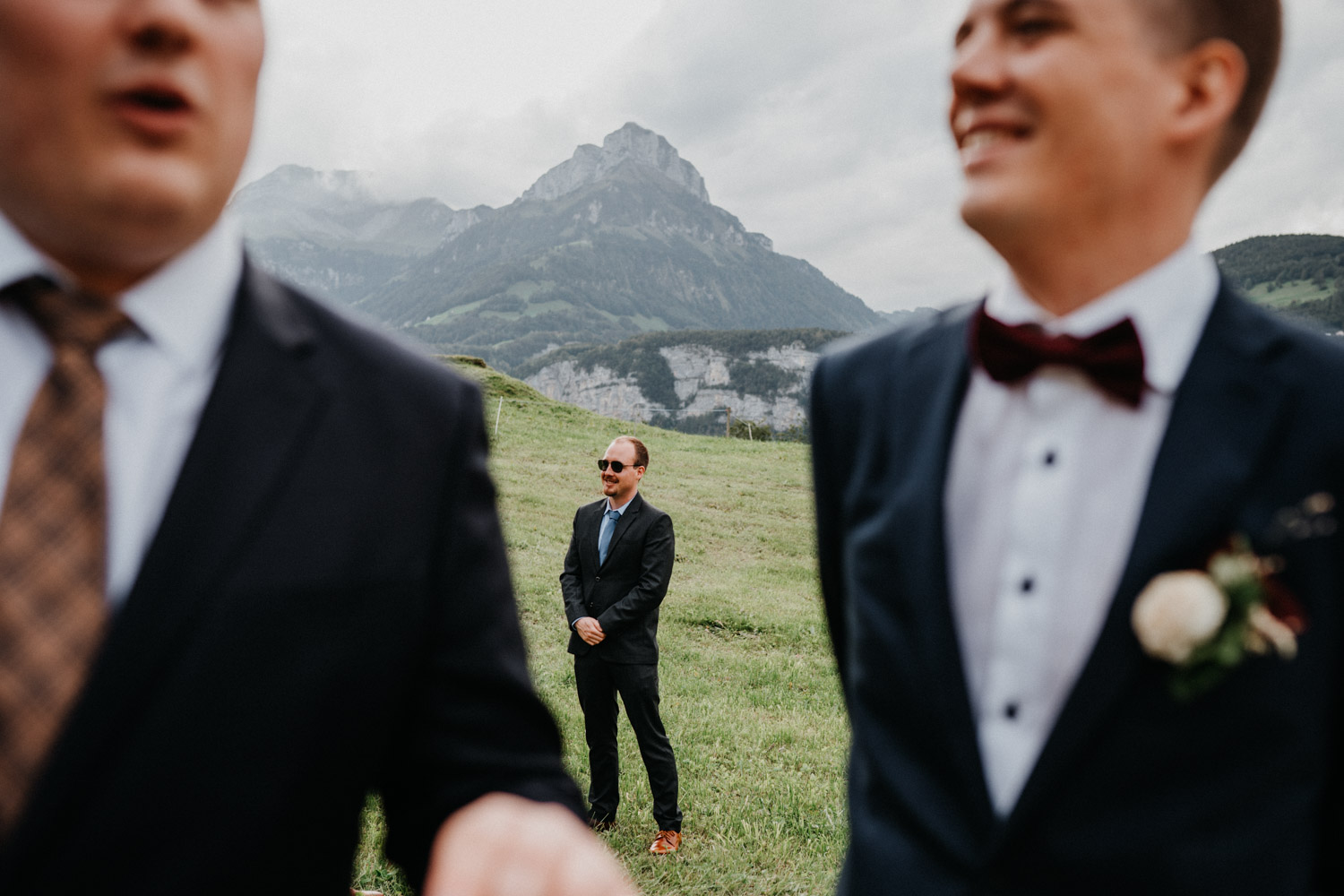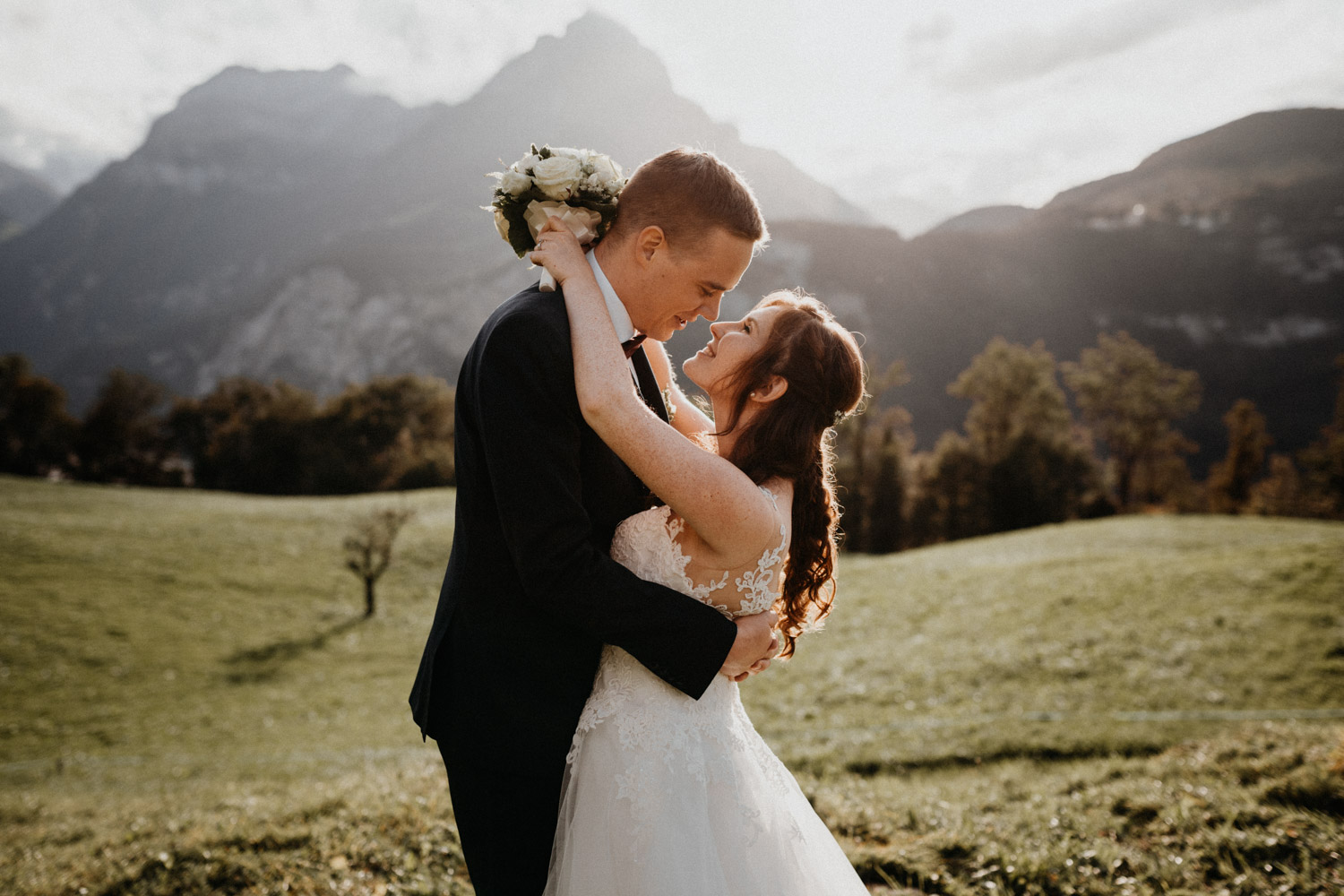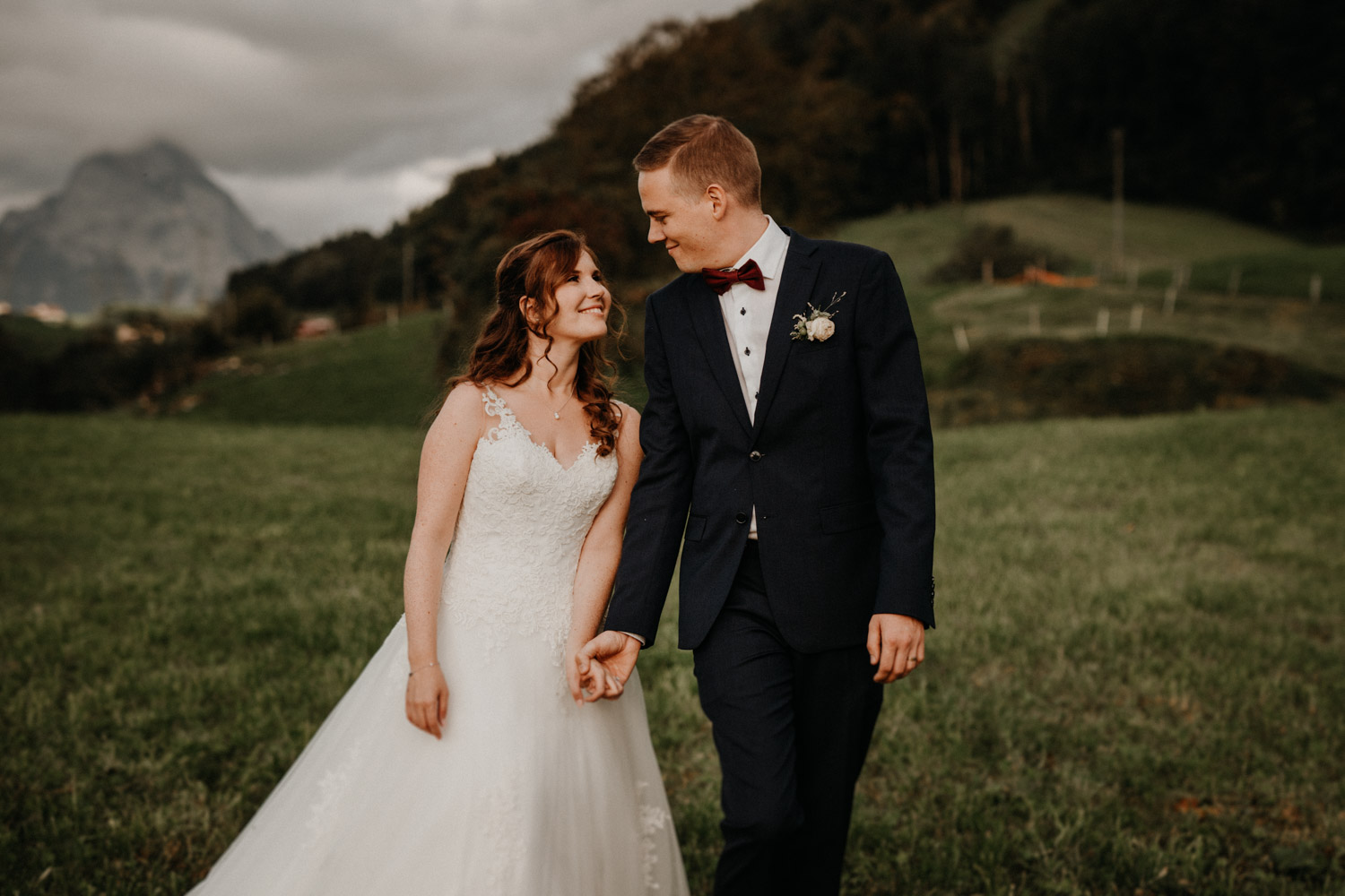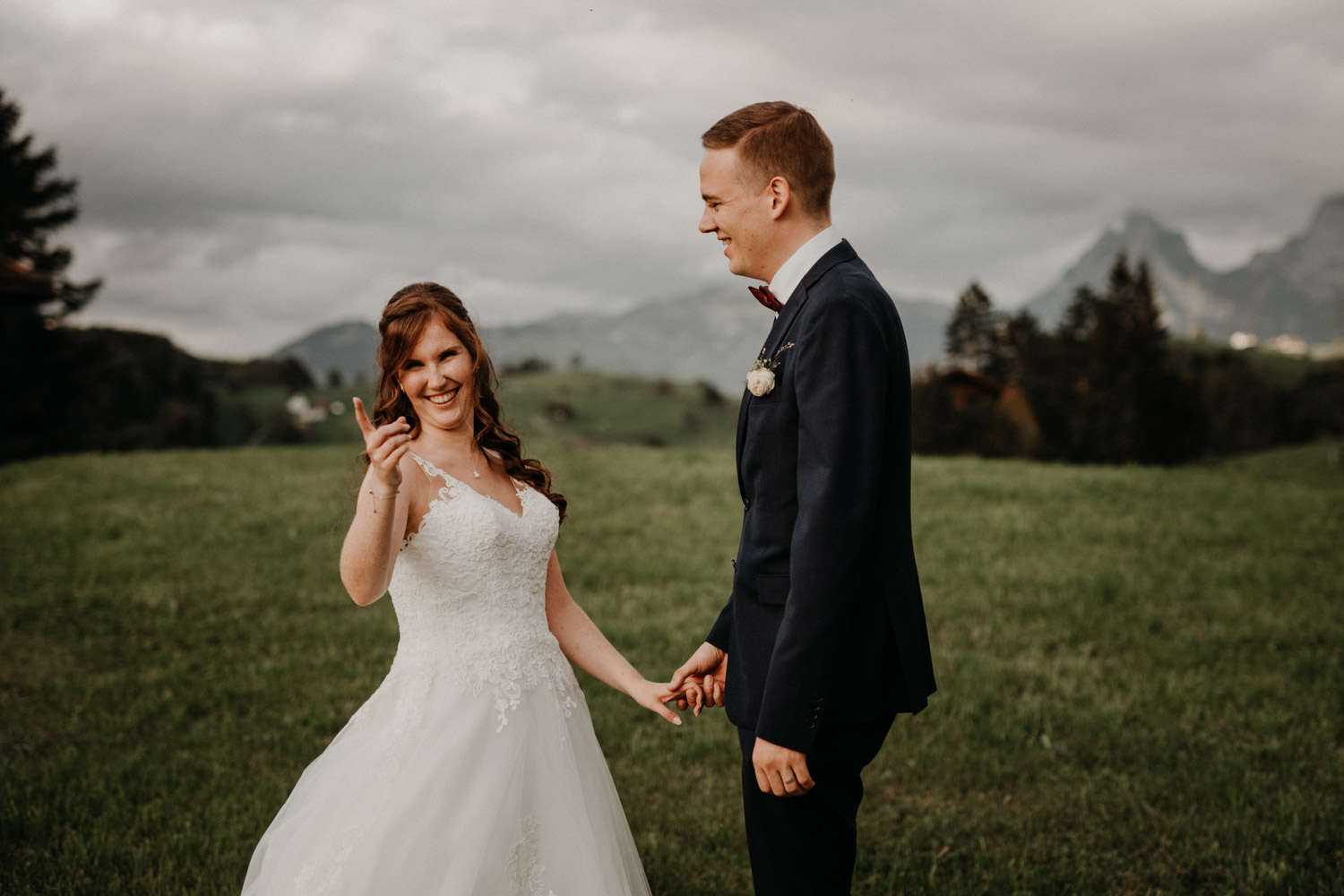 Eine kleine Kapelle in Morschach in der Innerschweiz, ein strahlend schöner Tag im noch jungen Herbst 2019 und ein wunderbar herzliches Hochzeitspaar mit fröhlicher Gäste-Gesellschaft. Viel mehr braucht es nicht für einen perfekten Tag als Hochzeitsfotograf in der Marienkapelle in Morschach. Die kleine Kapelle, in der schon Mathias’ Eltern geheiratet haben, liegt wunderschön inmitten von Wiesen und umgeben von den Bergen der Schweizer Alpen. Entsprechend erübrigte sich die manchmal doch etwas mühsame Suche nach geeigneten Shootinglocations für das Brautpaarshooting. Nach der kirchlichen Trauung und dem anschliessenden Apéro haben wir uns daher ausgiebig Zeit genommen für die Hochzeitsfotos von Jamin & Mathias. Danke ihr zwei, dass ich eure Hochzeit als Hochzeitsfotograf in der Marienkapelle in Morschach begleiten durfte!