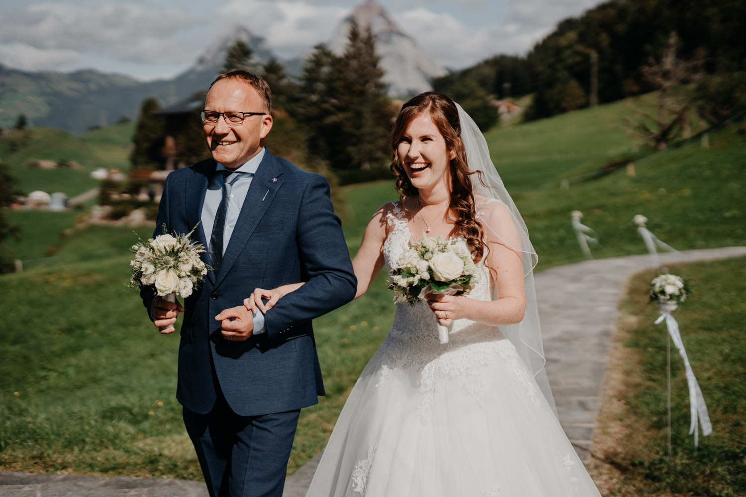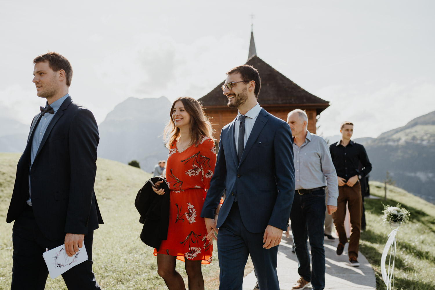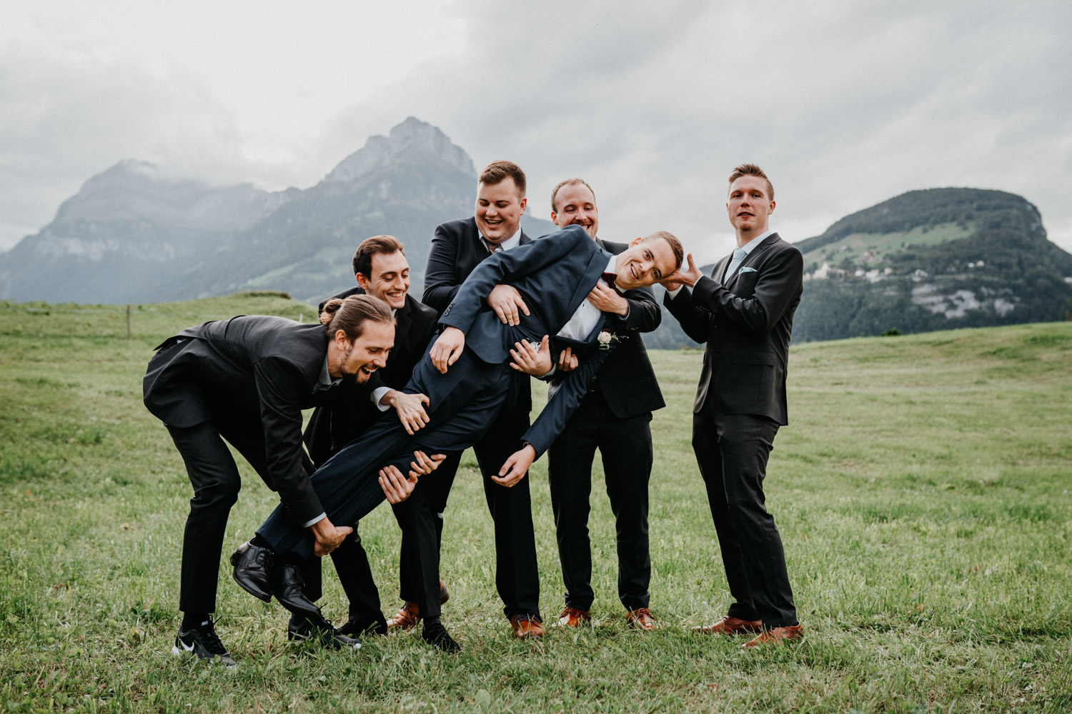 Eine kleine Kapelle in Morschach in der Innerschweiz, ein strahlend schöner Tag im noch jungen Herbst 2019 und ein wunderbar herzliches Hochzeitspaar mit fröhlicher Gäste-Gesellschaft. Viel mehr braucht es nicht für einen perfekten Tag als Hochzeitsfotograf in der Marienkapelle in Morschach. Die kleine Kapelle, in der schon Mathias’ Eltern geheiratet haben, liegt wunderschön inmitten von Wiesen und umgeben von den Bergen der Schweizer Alpen. Entsprechend erübrigte sich die manchmal doch etwas mühsame Suche nach geeigneten Shootinglocations für das Brautpaarshooting. Nach der kirchlichen Trauung und dem anschliessenden Apéro haben wir uns daher ausgiebig Zeit genommen für die Hochzeitsfotos von Jamin & Mathias. Danke ihr zwei, dass ich eure Hochzeit als Hochzeitsfotograf in der Marienkapelle in Morschach begleiten durfte!