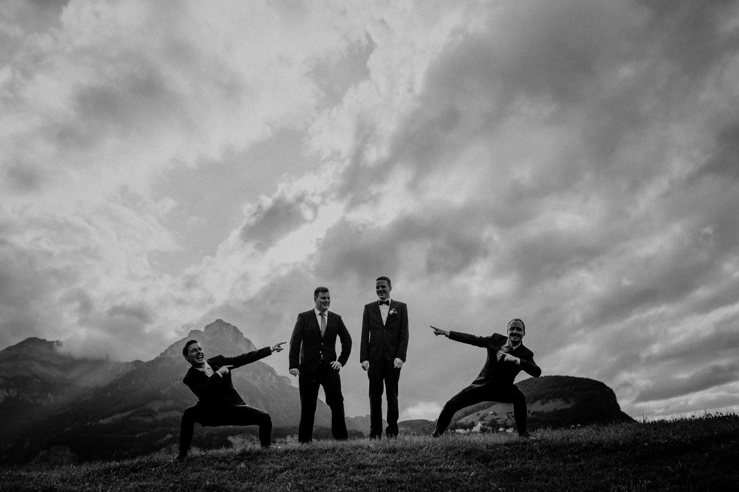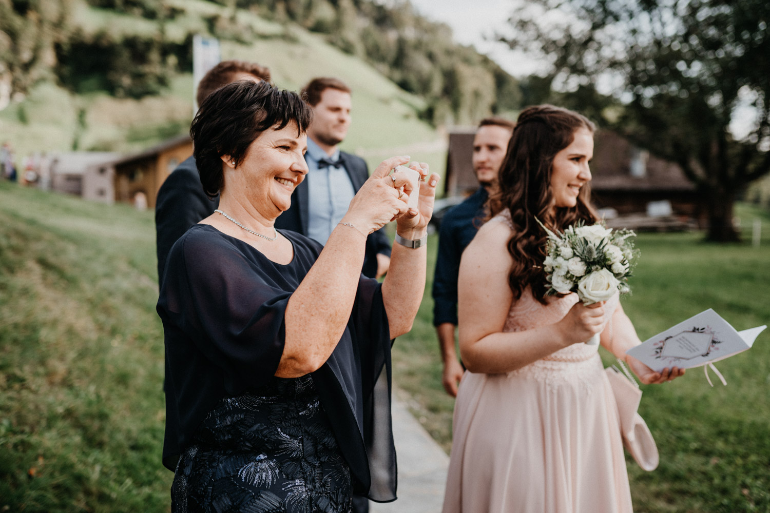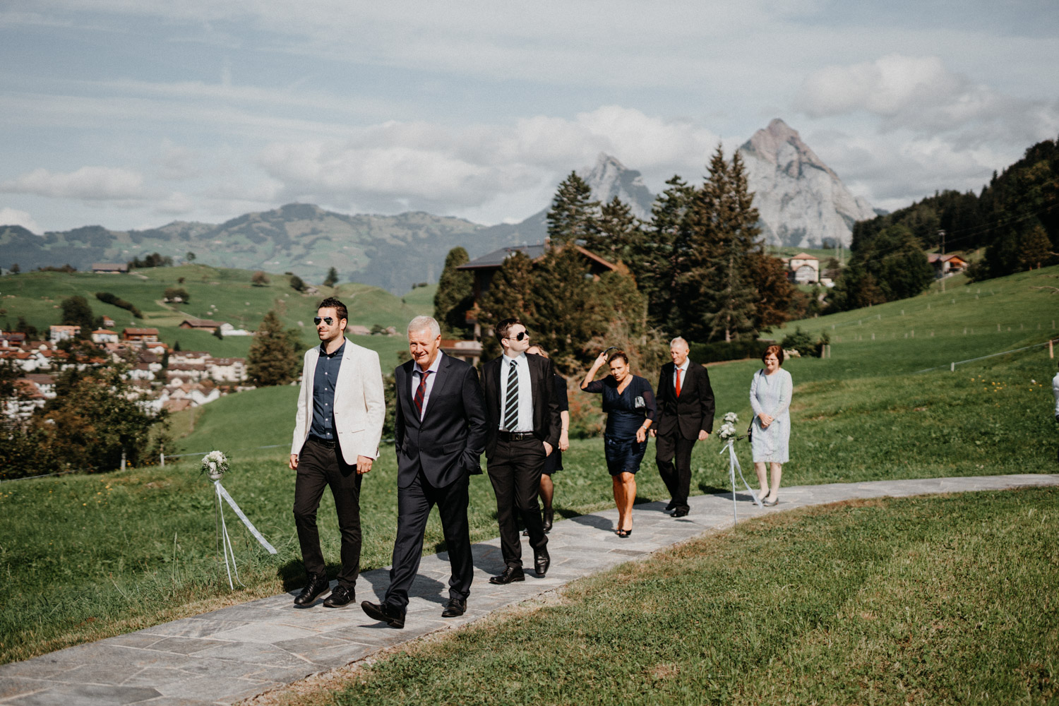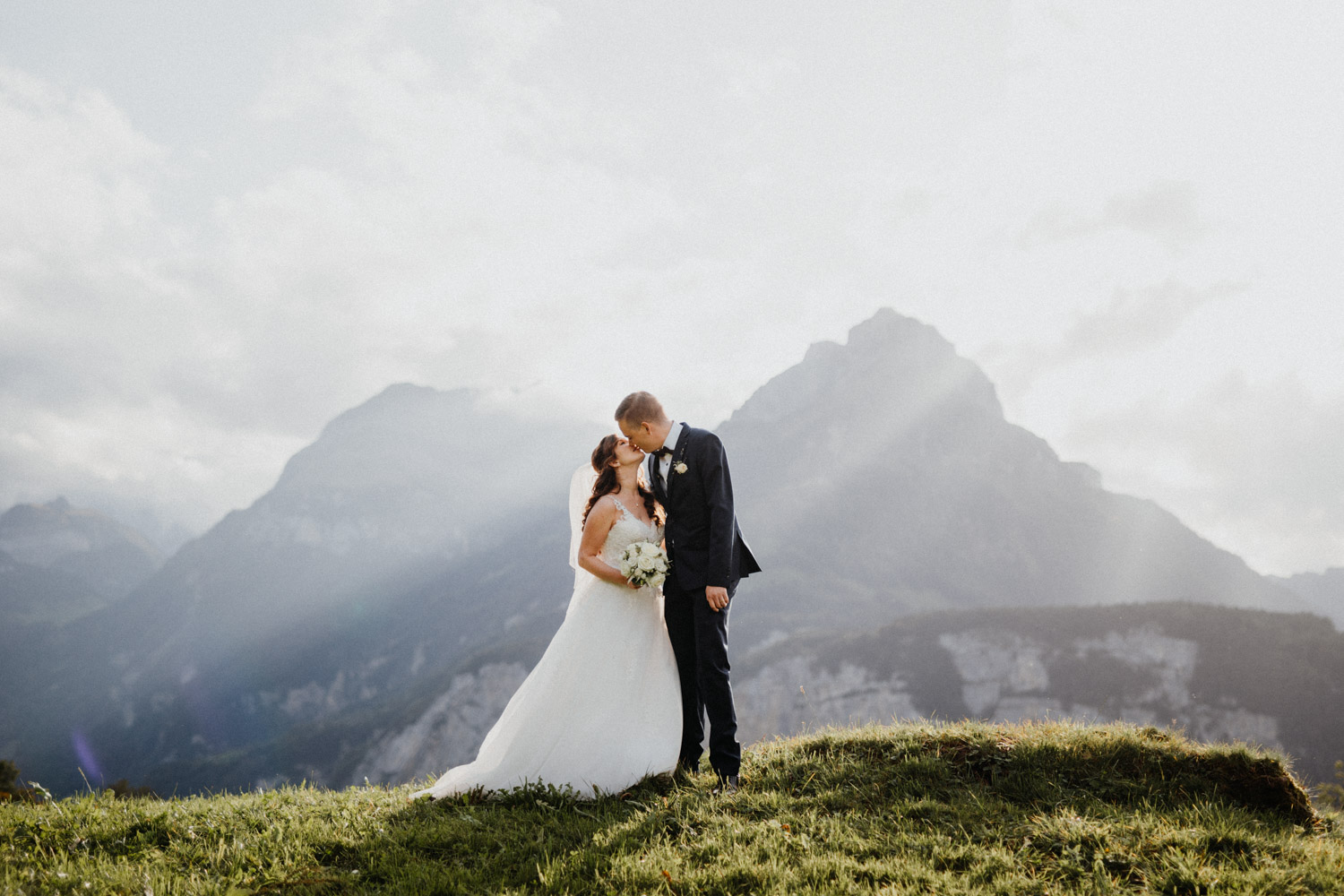 Eine kleine Kapelle in Morschach in der Innerschweiz, ein strahlend schöner Tag im noch jungen Herbst 2019 und ein wunderbar herzliches Hochzeitspaar mit fröhlicher Gäste-Gesellschaft. Viel mehr braucht es nicht für einen perfekten Tag als Hochzeitsfotograf in der Marienkapelle in Morschach. Die kleine Kapelle, in der schon Mathias’ Eltern geheiratet haben, liegt wunderschön inmitten von Wiesen und umgeben von den Bergen der Schweizer Alpen. Entsprechend erübrigte sich die manchmal doch etwas mühsame Suche nach geeigneten Shootinglocations für das Brautpaarshooting. Nach der kirchlichen Trauung und dem anschliessenden Apéro haben wir uns daher ausgiebig Zeit genommen für die Hochzeitsfotos von Jamin & Mathias. Danke ihr zwei, dass ich eure Hochzeit als Hochzeitsfotograf in der Marienkapelle in Morschach begleiten durfte!