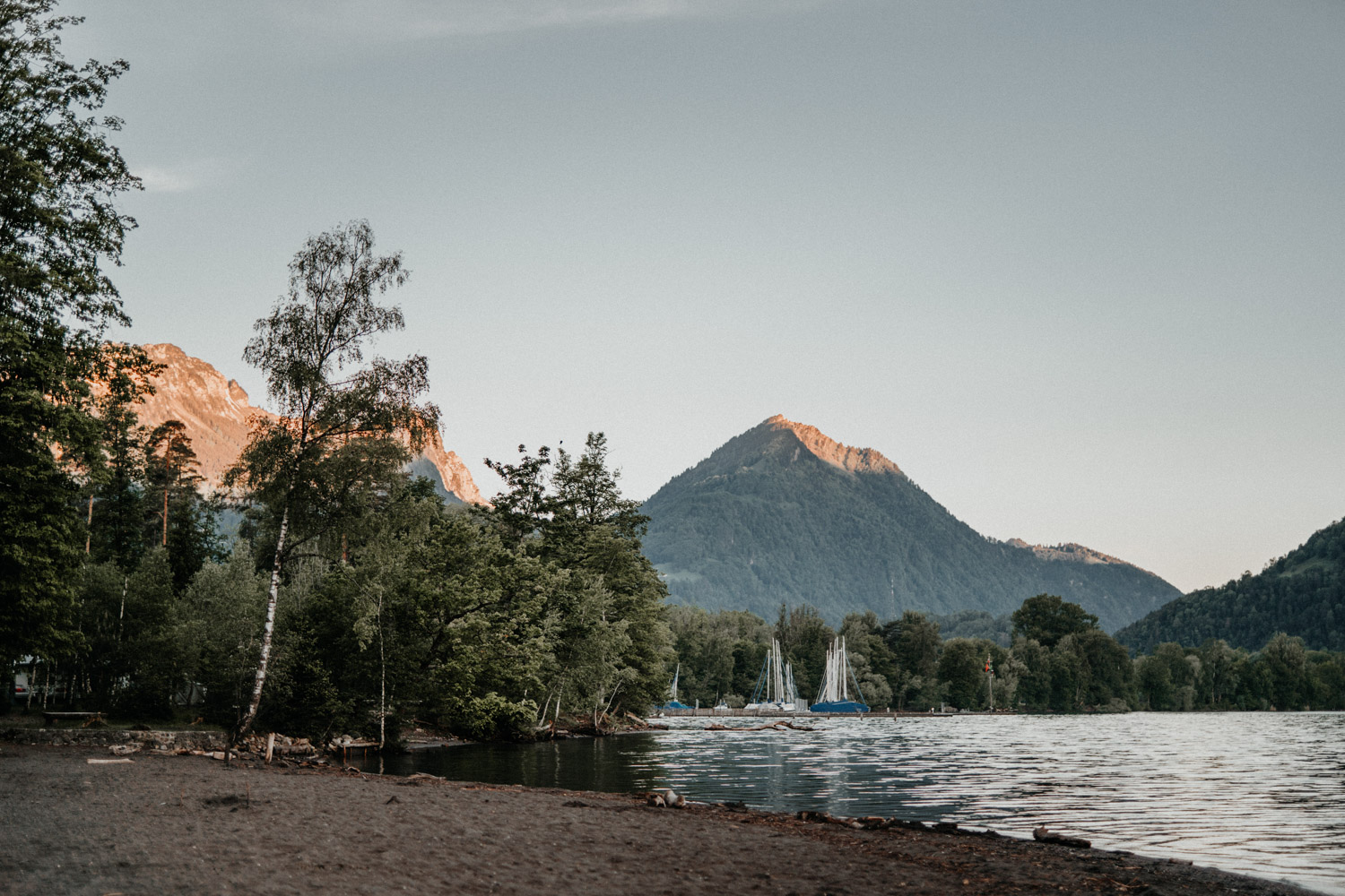 Vor kurzem haben Manuela und Karsten geheiratet, und kurz später haben wir uns zum After Wedding Shooting am Walensee verabredet. Wunderschön gelegen, inmitten von den schönen Schweizer Bergen, aber trotzdem gut erreichbar ist der Walensee eine meiner liebsten Locations für Paarshootings. Früh morgens haben wir uns verabredet, und schon während der Fahrt dorthin habe ich mich wahnsinng auf das Shooting gefreut. Das Wetter war perfekt, und die Sonne begann schon, aufzugehen. Durch die Berge rund um den See war es dort zuerst noch schattig und wir haben immer darüber spekuliert, wann sie denn jetzt endlich aufgehen würde. Und dann, urplötzlich, kam sie über den Bergen hervor und innerhalb von weniger als einer Minute war alles hell erleuchtet. Um 9 Uhr war ich bereits wieder zu Hause – was für ein perfekter Start in den Tag! Danke Manuela & Karsten für ein wunderschönes After Wedding Shooting am Walensee!