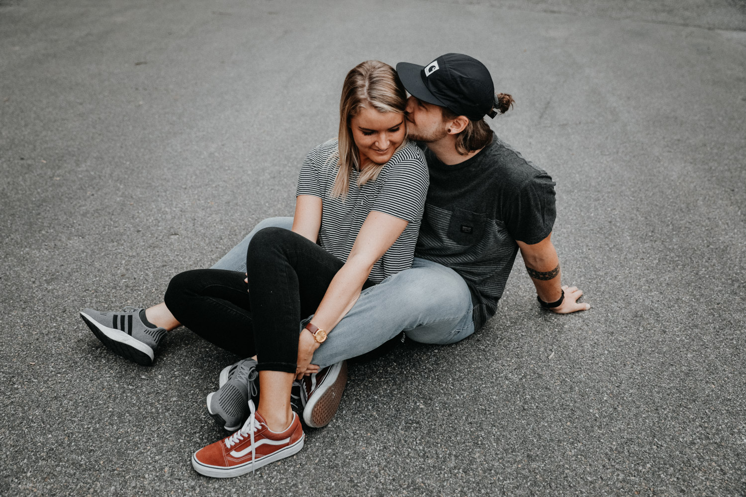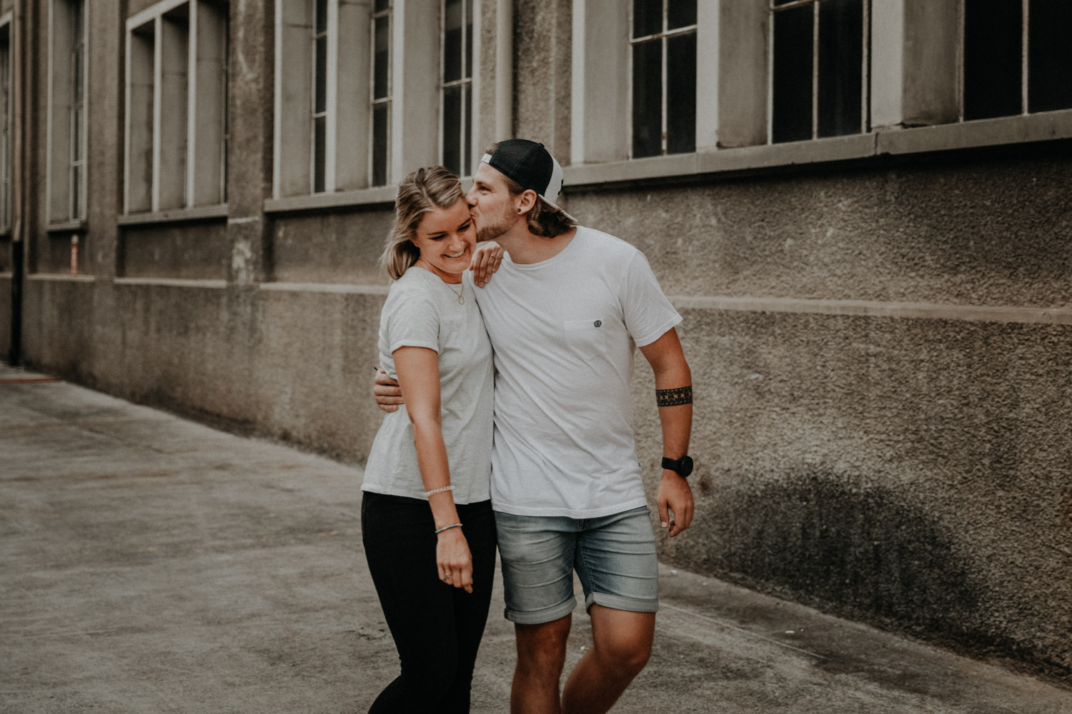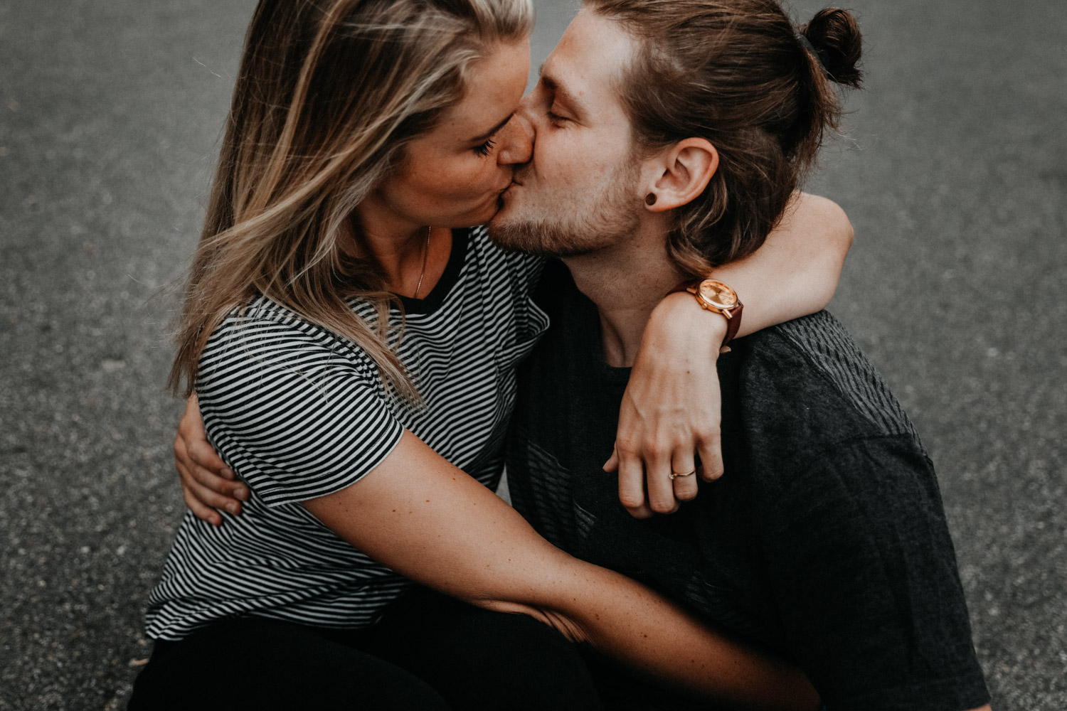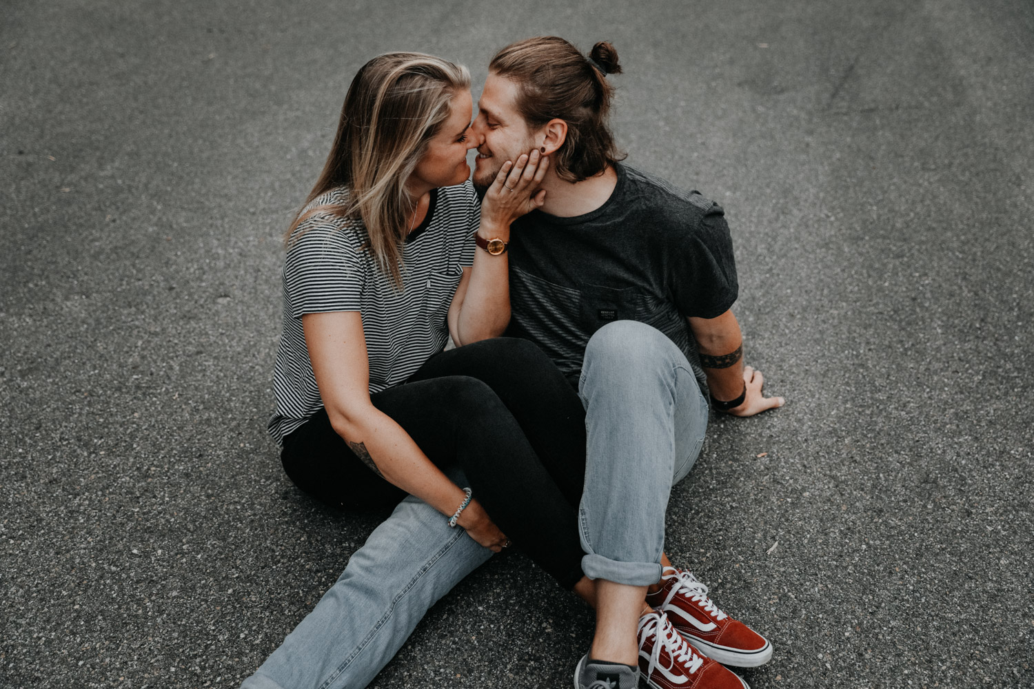 Ein Paarshooting in Bern – da denkt man zuerst an ein Bergshooting! Ich hab stundenlang auf Google Maps nach einer geeigneten Fotolocation gesucht, doch wegen viel Wetterpech und dem einen oder andern Surf- oder Skateboardunfall mussten wir das Shooting mehrmals verschieben. Irgendwann hats dann doch noch geklappt, und kurz vorher bin ich auf den Bernapark aufmerksam geworden. Berge sind toll, Bergshootings noch mehr, aber man kann auch nicht immer das Gleiche machen! Ausserdem hatte ich das Gefühl, dass diese Umgebung viel besser zu den zwei Rollbrett-Liebhabern hier passt. So sind wir dann eines Abends losgezogen, und obwohl die Sonne sich leider, leider nicht gezeigt hat, sind ein paar tolle, ungestellte und natürliche Paarfotos enstanden.