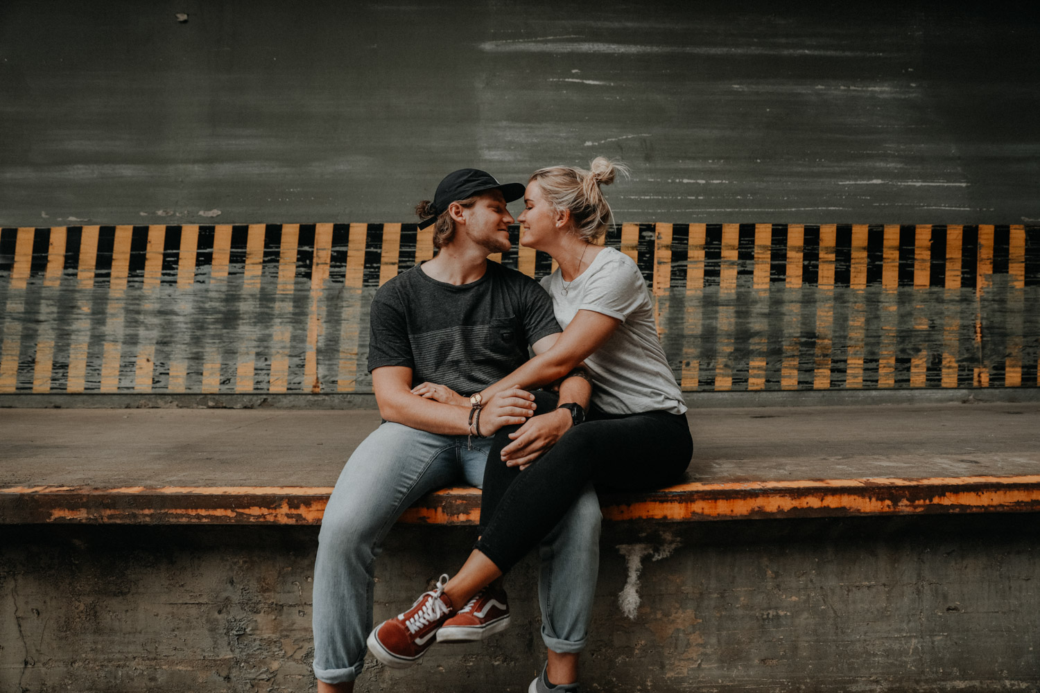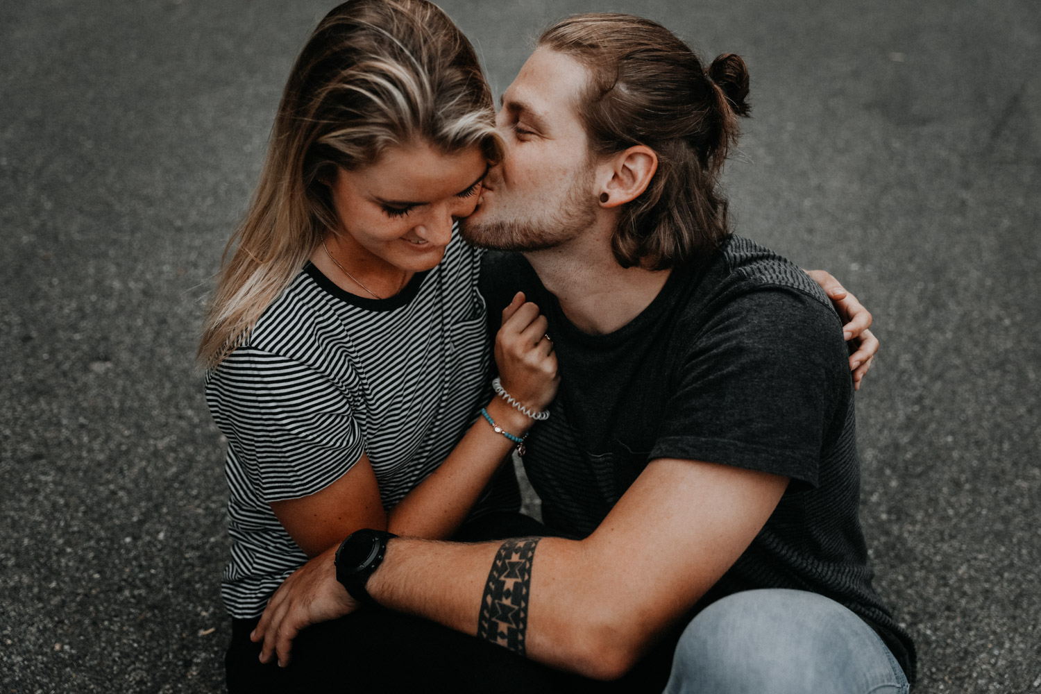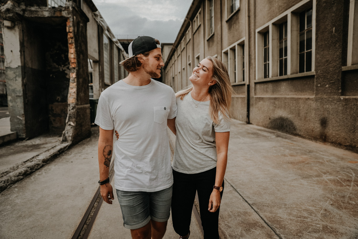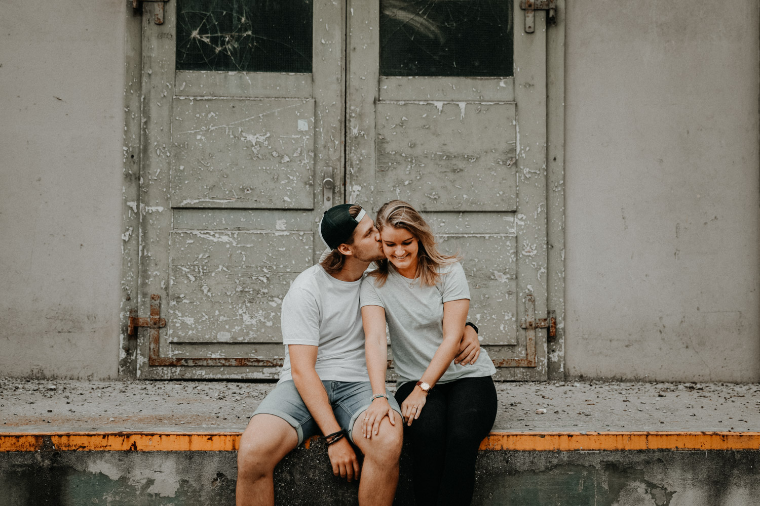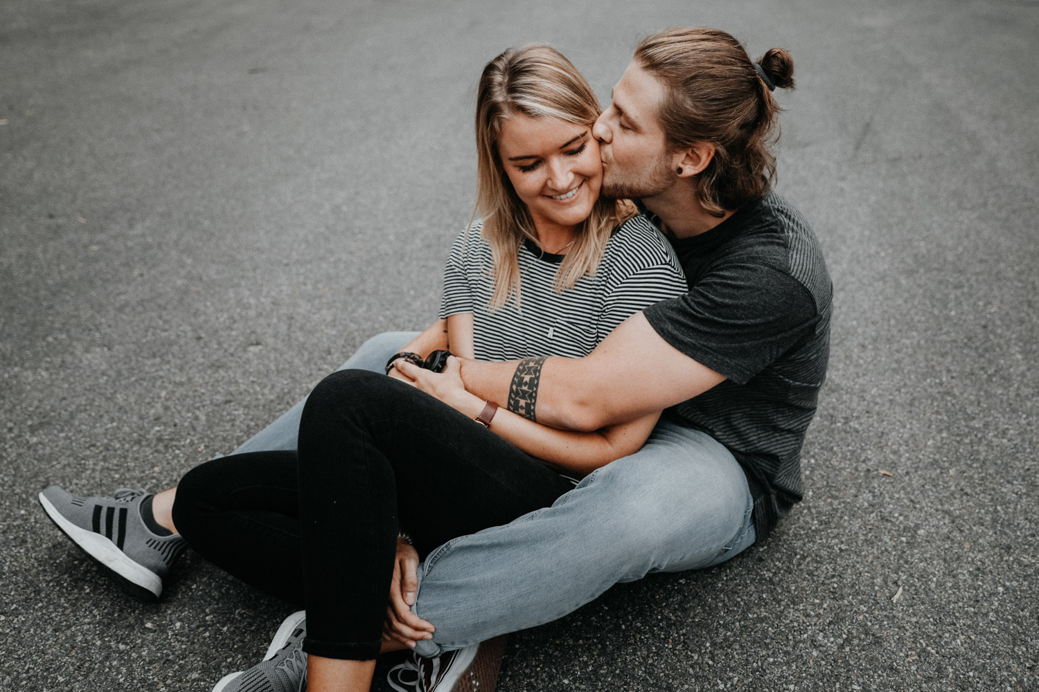 Ein Paarshooting in Bern – da denkt man zuerst an ein Bergshooting! Ich hab stundenlang auf Google Maps nach einer geeigneten Fotolocation gesucht, doch wegen viel Wetterpech und dem einen oder andern Surf- oder Skateboardunfall mussten wir das Shooting mehrmals verschieben. Irgendwann hats dann doch noch geklappt, und kurz vorher bin ich auf den Bernapark aufmerksam geworden. Berge sind toll, Bergshootings noch mehr, aber man kann auch nicht immer das Gleiche machen! Ausserdem hatte ich das Gefühl, dass diese Umgebung viel besser zu den zwei Rollbrett-Liebhabern hier passt. So sind wir dann eines Abends losgezogen, und obwohl die Sonne sich leider, leider nicht gezeigt hat, sind ein paar tolle, ungestellte und natürliche Paarfotos enstanden.