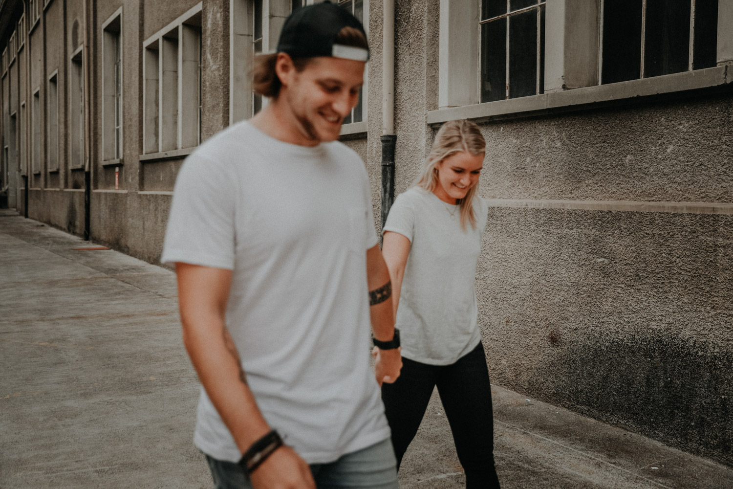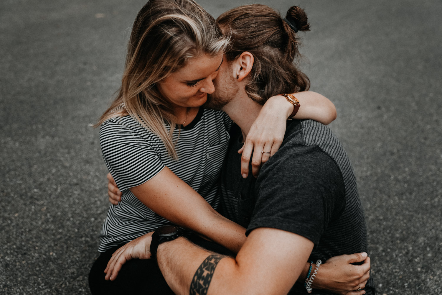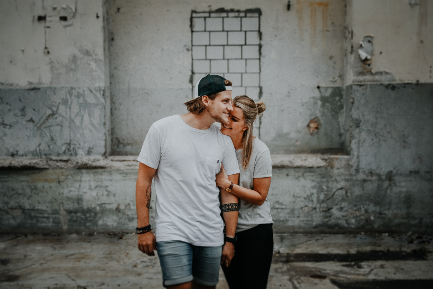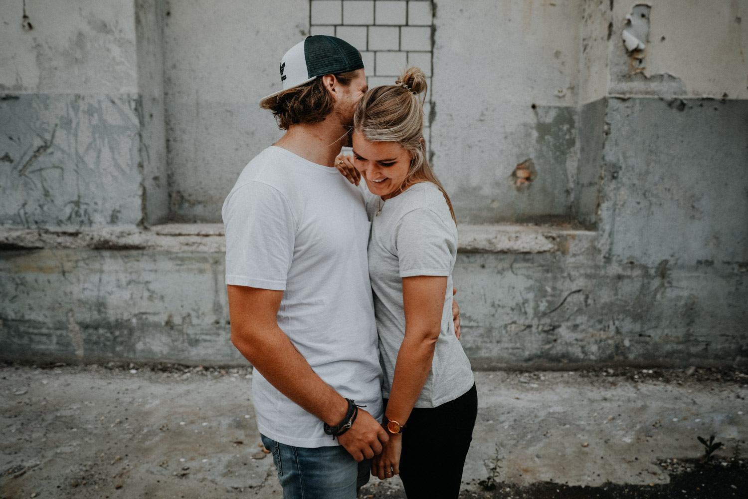 Ein Paarshooting in Bern – da denkt man zuerst an ein Bergshooting! Ich hab stundenlang auf Google Maps nach einer geeigneten Fotolocation gesucht, doch wegen viel Wetterpech und dem einen oder andern Surf- oder Skateboardunfall mussten wir das Shooting mehrmals verschieben. Irgendwann hats dann doch noch geklappt, und kurz vorher bin ich auf den Bernapark aufmerksam geworden. Berge sind toll, Bergshootings noch mehr, aber man kann auch nicht immer das Gleiche machen! Ausserdem hatte ich das Gefühl, dass diese Umgebung viel besser zu den zwei Rollbrett-Liebhabern hier passt. So sind wir dann eines Abends losgezogen, und obwohl die Sonne sich leider, leider nicht gezeigt hat, sind ein paar tolle, ungestellte und natürliche Paarfotos enstanden.