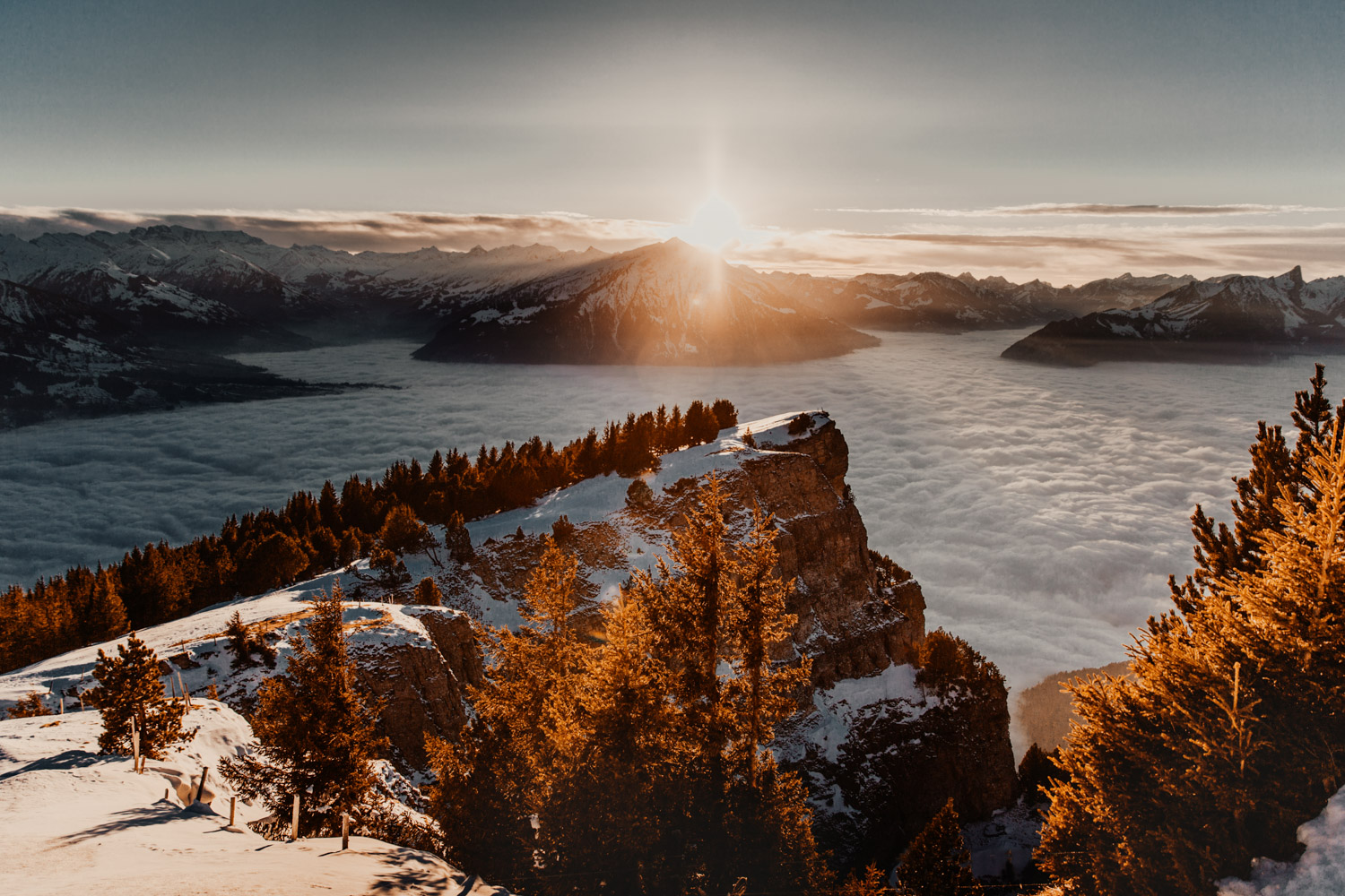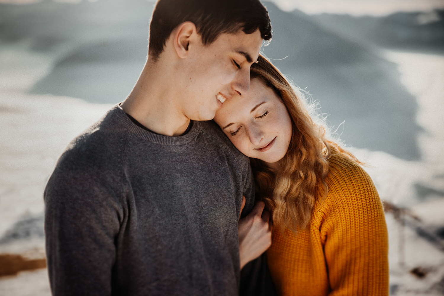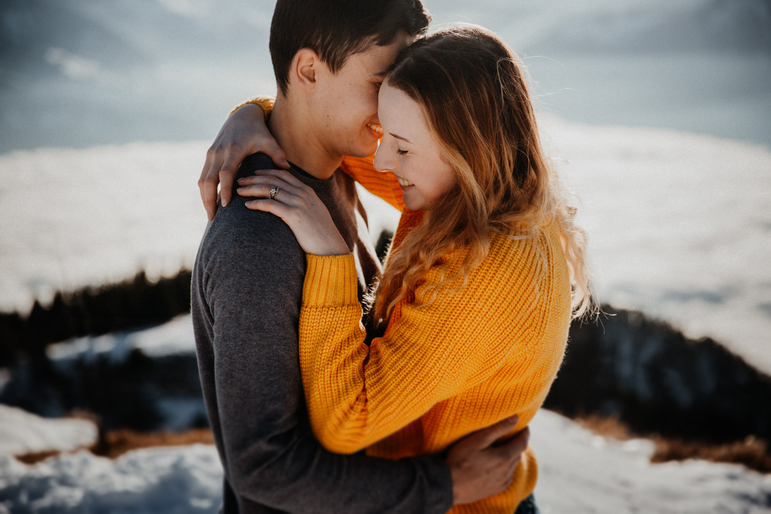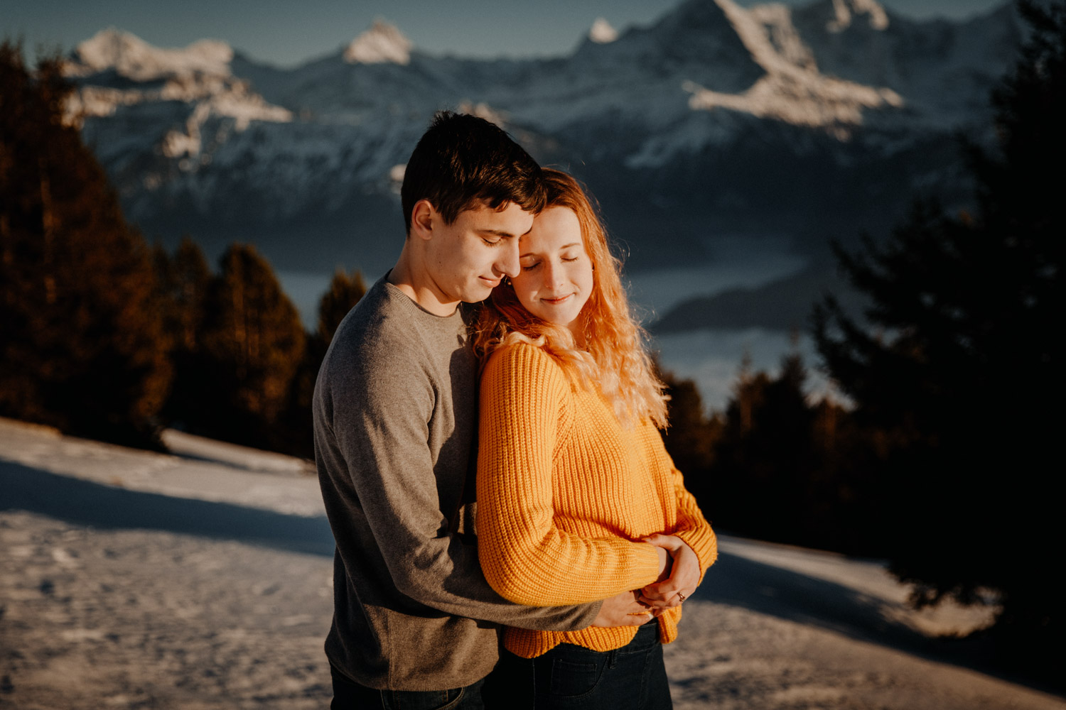 Schon lange davon geträumt – jetzt endlich mal umgesetzt: Ein Paarshooting in den Bergen. Auf Instagram habe ich einen Aufruf gemacht und nach einem Paar gesucht, Saskia & Adrian haben sich gemeldet und wenige Tage später gings ab in die Höhe! Das Niederhorn in der Region Interlaken war das Ziel, und nachdem wir viel länger als gedacht für die Seilbahn anstehen mussten kam ich schon etwas ins Schwitzen. Zum Glück hatten wir aber genügend Zeit eingeplant, und so sind wir bei perfektem Licht oben angekommen. Bei solch starker Sonne ist die Locationsuche aber nicht immer ganz so einfach wie man vielleicht denken würde, denn die Sonne gibt einem ziemlich genau vor, in welche Richtung man fotografieren muss. So sind wir losgestapft auf der Suche nach dem perfekten Ort. Irgendwo haben wir dann einfach mal begonnen. Das war schon mal nicht schlecht von der Aussicht her, aber noch nicht perfekt. Irgendwann ist uns dann etwas unterhalb von uns in der Weite ein Felsvorsprung über dem Nebelmeer aufgefallen, der ganz fernab lag von allen Touristen, hinter ein paar Bäumen versteckt. Also haben wir uns aufgemacht und sind durch den frischen und tiefen Schnee gestapft bis zu diesem absolut traumhaften Fleckchen Erde. Direkt unter uns das Nebelmeer, dahinter der mächtige Niesen – schon fast unwirklich schön! Ich hätte ewig weitermachen können, aber pünktlich zur letzten Talfahrt der Seilbahn haben wir uns dann wieder auf den Weg machen müssen. Wir hatten absolut perfekte Bedingungen für dieses unvergessliche Paarshooting, und die kurze Auszeit mit viel Sonne, Schnee und Bergluft war nicht nur gut für mein Portfolio, sondern auch für meinen Kopf! In solchen Momenten bereue ich regelmässig, dass ich nicht im Berner Oberland wohne. Ein Bergshooting ist etwas, das mein Herz höher schlagen lässt – es wird definitiv nicht das letzte gewesen sein! Danke Saskia & Adrian fürs Mitmachen! 🙂